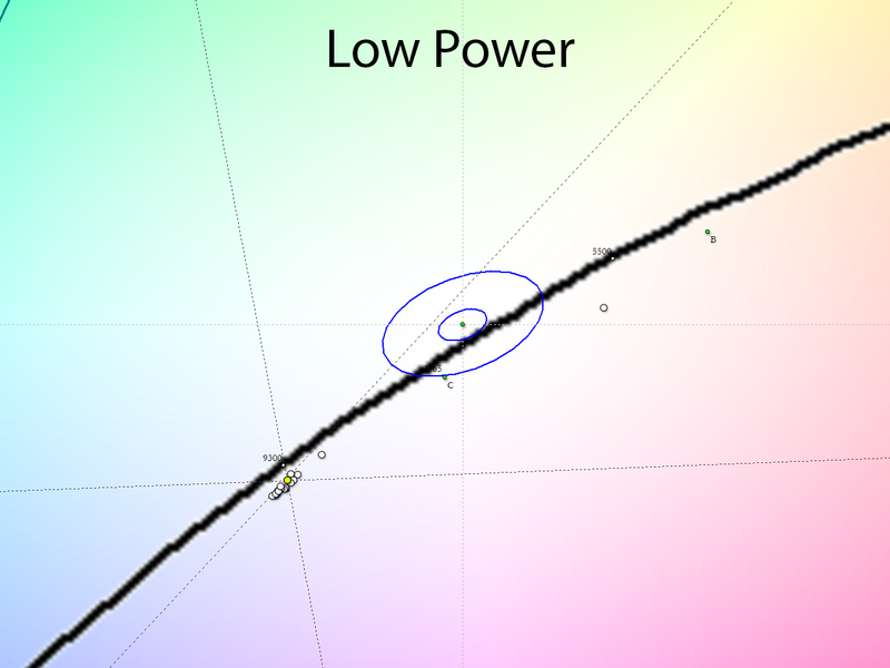 В свою очередь, режим Low Power действительно мало чем отличается от заводского, кроме установки «холодной» точки белого.