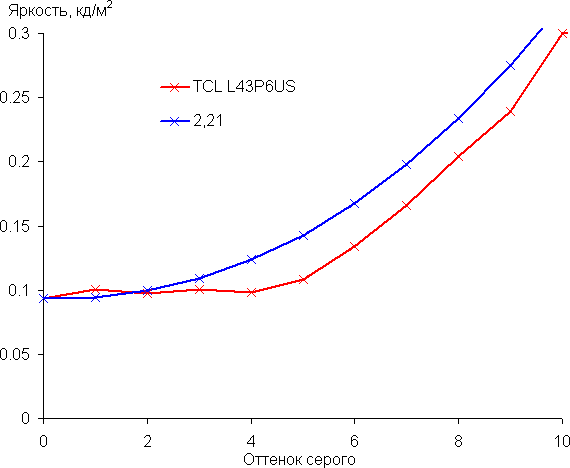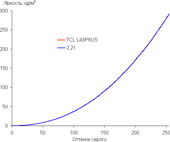 Аппроксимация полученной гамма-кривой дала показатель 2,21, что практически равно стандартному значению 2,2, при этом реальная гамма-кривая мало отклоняется от аппроксимирующей степенной функции:
