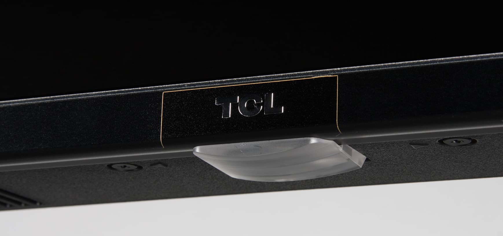В центре планки снизу находится логотип производителя, а под ним расположена накладка из прозрачного пластика с матовой поверхностью. Накладка образует световод для ИК-приемника сигналов с пульта ДУ.
