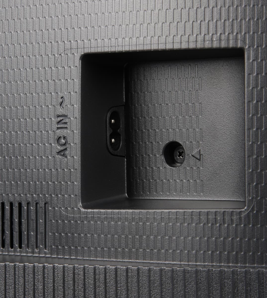 Альтернативный способ установки телевизора без использования штатных ножек — крепление телевизора на стену с помощью кронштейна под монтажные отверстия VESA 200 на 200 мм. По вертикали резьбовые гнезда немного смещены, поэтому для выравнивания крепежной плоскости в верхние отверстия нужно ввернуть входящие в комплект проставки.