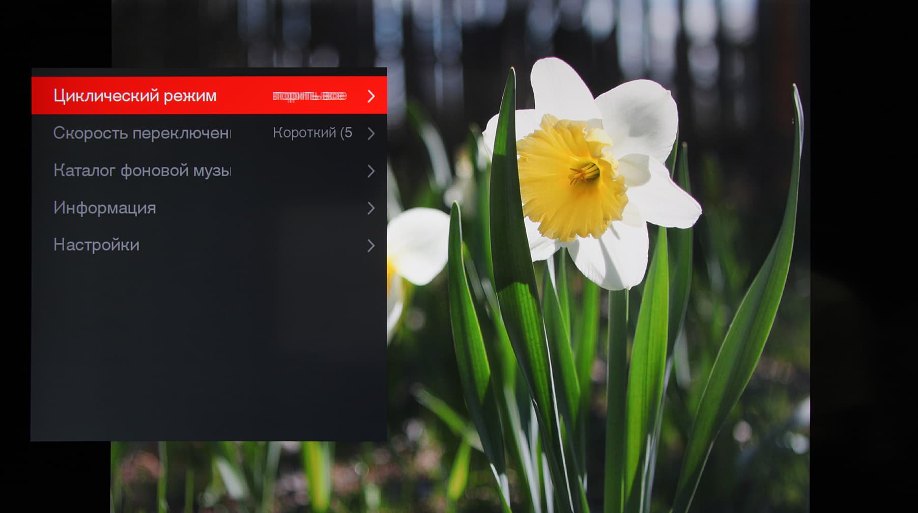 Два протестированных жестких диска без проблем работали от USB-порта без дополнительного питания. Отметим, что телевизор поддерживает USB-накопители с файловыми системами FAT32 и NTFS, а с кириллическими названиями файлов и папок не было никаких проблем. Плеер телевизора обнаруживает все файлы в папках, даже если на диске очень много файлов (более 100 тысяч), что получается далеко не у каждого «умного» ТВ. Нами подтверждена способность телевизора показывать растровые графические файлы в форматах JPEG, GIF, PNG и BMP, в том числе в виде слайд-шоу под фоновое воспроизведение аудиофайлов из выбранной папки.