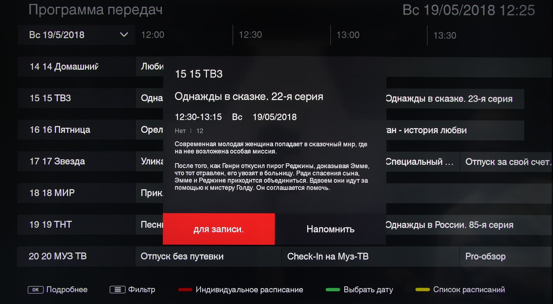 Есть хорошая поддержка электронной программы передач — можно посмотреть, что именно идет на текущем и других каналах, запрограммировать просмотр или запись программы или сериала и т. д.
