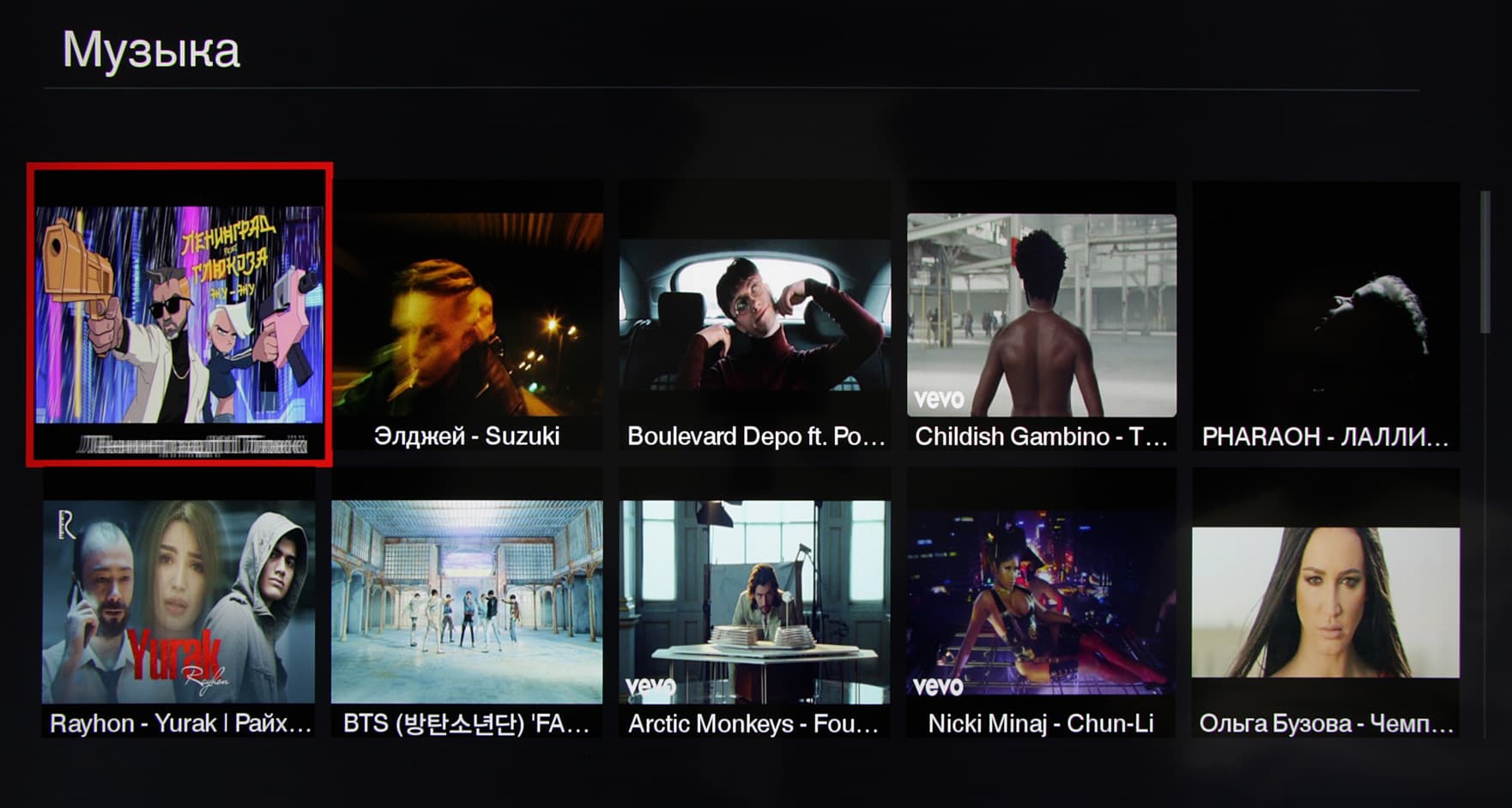 Страницы прокручиваются вправо-влево, а для быстрого перехода на нужную страницу нужно выбрать соответствующую надпись в нижней части экрана. В основном плитки — это или прямые ссылки на видео в YouTube, или переход на следующий уровень, также содержащий плитки-ссылки на видео в YouTube по тематике Фильмы, Спорт, Музыка и т. д.