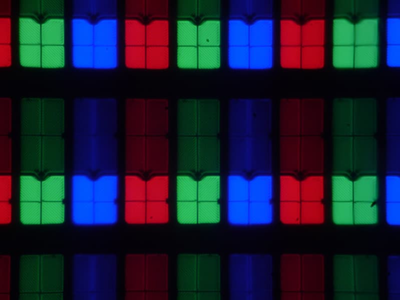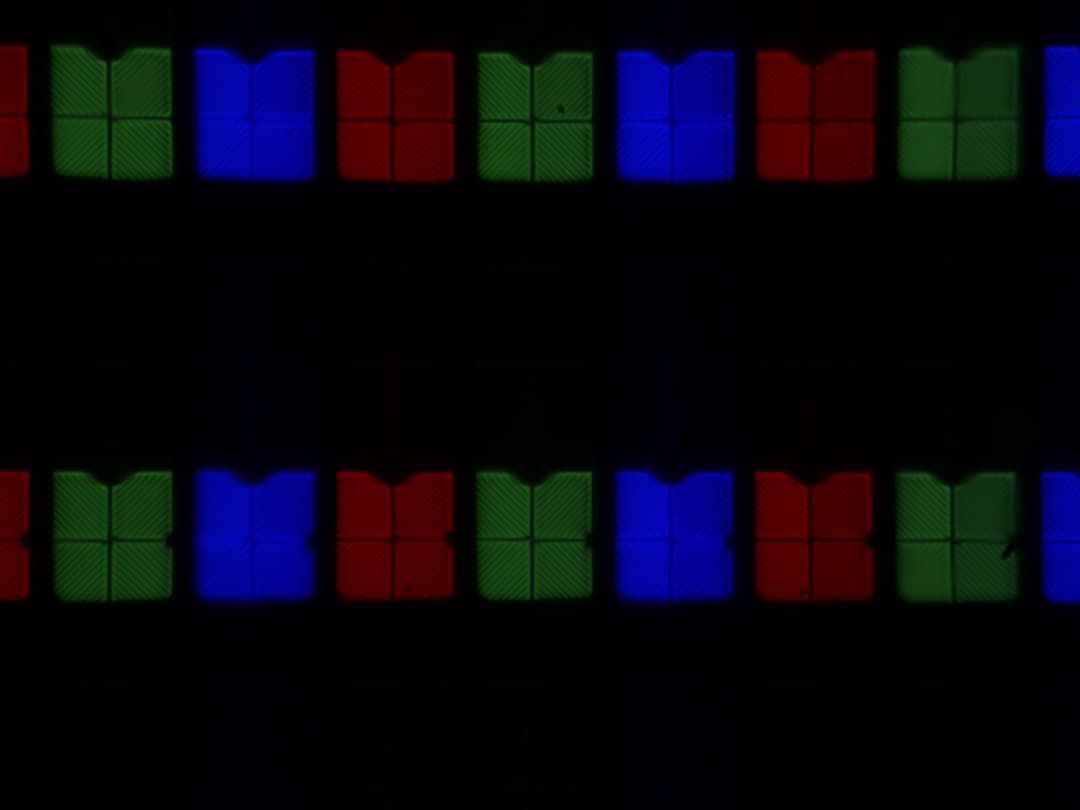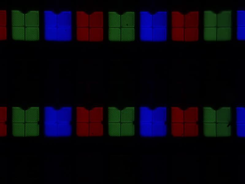 Субпиксели трех цветов (красного, зеленого и синего) поделены на две различающиеся по площади и независимо управляемые области, каждая из которых разделена на четыре участка с доменами в различающейся ориентации. Такое сложное устройство в принципе способно обеспечить широкий динамический диапазон по количеству оттенков, так как с ростом яркости области включаются последовательно, и хорошие углы обзора, чему способствует вариация ориентации ЖК в доменах. Отметим, что никакого видимого «кристаллического эффекта» (микроскопической вариации яркости и оттенка) в данном случае нет.