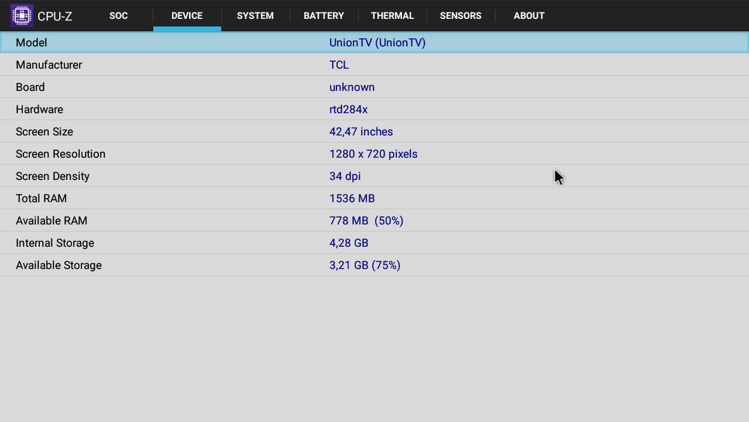Программной платформой для этого ТВ служит Android TV, которая является наследницей Google TV. Основана установленная версия Android TV на ОС Android 8.0. Из режима ожидания включается ТВ быстро: примерно через 7 секунд уже выводится изображение от текущего источника, но еще некоторое время программы и оболочка могут подтормаживать. Если был перерыв в питании, то система перезапускается заново, а это уже занимает гораздо больше времени. Конфигурацию аппаратной части поясняют данные программы CPU-Z: