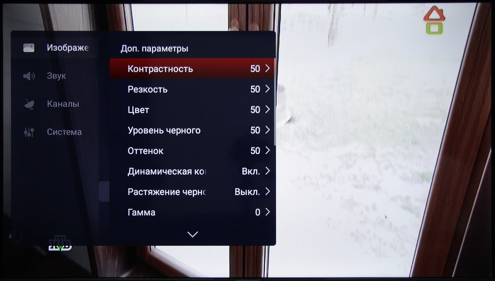 Заметим, что для настройки самого ТВ, изображения в частности, нужно использовать контекстное меню, вызываемое кнопкой на пульте ДУ, которое не интегрировано с настройками ОС Android TV.