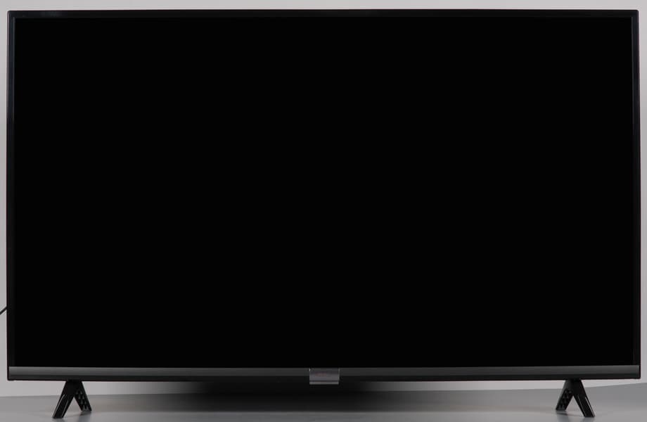 Под ним расположена накладка из прозрачного пластика с матовой поверхностью. Накладка образует световод для ИК-приемника сигналов с пульта ДУ и индикатора состояния белого свечения. За накладкой — кнопка питания. Больше кнопок на самом телевизоре нет.