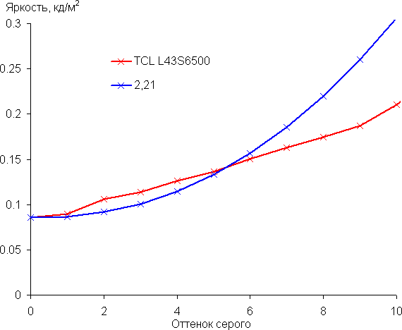 Аппроксимация полученной гамма-кривой дала показатель 2,21, что практически равно стандартному значению 2,2, при этом реальная гамма-кривая мало отклоняется от аппроксимирующей степенной функции: