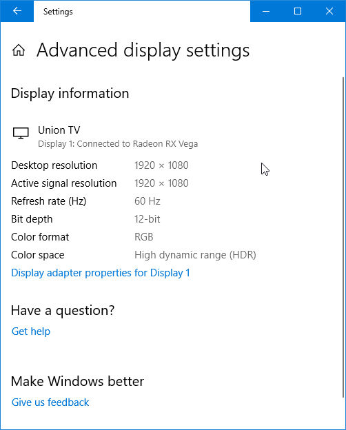 Или, например, при воспроизведении в видеоплеере в полноэкранном режиме с помощью видеорендерера madVR независимо от настроек ОС. Воспроизведение тестовых видеороликов с 10-битным цветом и плавными градиентами показало, что их вывод в режиме HDR отличается от вывода в режиме с глубиной 8 бит на цвет, но все же переходы между оттенками заметнее, чем в случае настоящего 10-битного вывода. Тестовые HDR-видеоролики с реальными и тестовыми изображениями по субъективным ощущениям выводились с хорошим качеством. Максимальная яркость в режиме HDR такая же, что и в режиме SDR, также цветовой охват не широкий (см. ниже), поэтому поддержка HDR номинальная, но все же она есть.