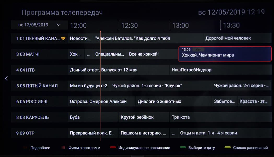 Есть хорошая поддержка электронной программы передач — можно посмотреть, что именно идет на текущем и других каналах, запрограммировать просмотр программы или сериала и т. д.