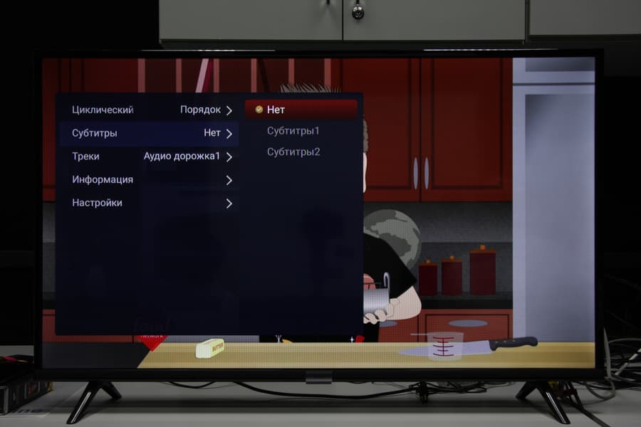 Два протестированных жестких диска без проблем работали от USB-порта без дополнительного питания. Отметим, что телевизор поддерживает USB-накопители с файловыми системами FAT32 и NTFS (exFAT не поддерживается), а с кириллическими названиями файлов и папок не было никаких проблем. Плеер телевизора обнаруживает все файлы в папках, даже если на диске очень много файлов (более 100 тысяч).