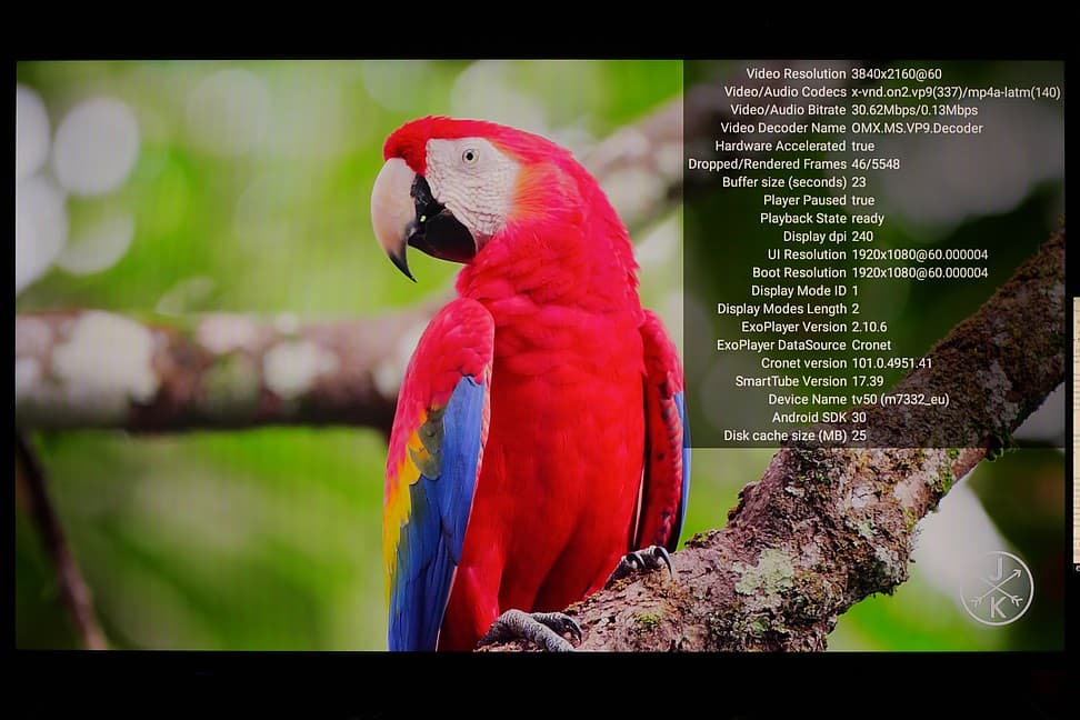 Тестирование воспроизведения видеофайлов проводилось в основном с помощью плеера MX Player. Поддерживается аппаратное декодирование звуковых дорожек как минимум в форматах AAC, AC3, MP2, MP3 и PCM. Дорожки DTS и WMA — только программно. Большинство из опробованных современных файлов высокого разрешения без проблем воспроизводились в режиме аппаратного декодирования, вплоть до вариантов H.265 с разрешением 4К при 60 кадр/с. В MX Player можно смотреть копии дисков Blu-ray, но только по файлам. Впрочем, при этом все равно можно переключаться между звуковыми дорожками и субтитрами, даже если их очень много. Поддерживается воспроизведение видеофайлов HDR (HDR10 и HLG, контейнеры MP4, TS, WebM и MKV, кодеки AV1, VP9 и H.265), а в случае файлов с 10 бит на цвет, согласно визуальной оценке, градаций оттенков больше, чем у 8-битных файлов.