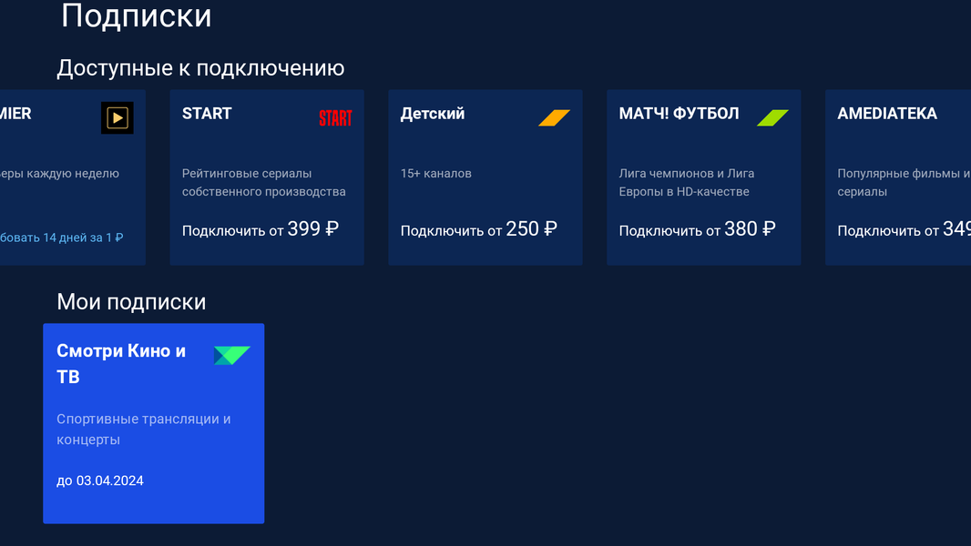 - возможность смотреть архив ТВ-каналов за последние семь дней;