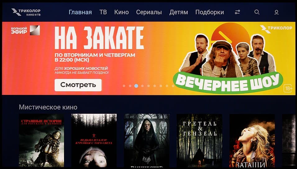 С нашей точки зрения, ЖК-телевизор Триколор H50U5500SA представляет интерес прежде всего для тех, кто пользуется или планирует пользоваться сервисами потокового вещания, предоставляемыми компанией и ее партнерами. Впрочем, Триколор считает, что телевизор подойдет всем, кто находится в поиске бюджетного 4К-телевизора с адекватным соотношением цены и качества. Удобный доступ к кинофильмам, сериалам, мультфильмам и ТВ-каналам можно получить как непосредственно с главного экрана, так и с помощью фирменного приложения, вызываемого в том числе напрямую выделенной кнопкой на пульте, плюс годовая подписка на услугу «Смотри Кино и ТВ» в подарок. В остальном это достаточно типичный современный недорогой телевизор, работающий под управлением Android. Отметим, что пользователь не ограничен набором предлагаемых программ, при желании он может установить практически любое стороннее ПО, в наибольшей степени отвечающее его потребностям и личным предпочтениям.