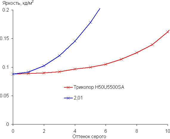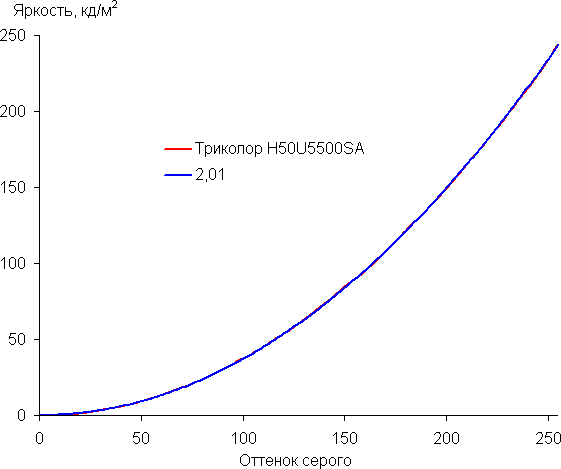 Аппроксимация полученной гамма-кривой дала показатель 2,01, что немного ниже стандартного значения 2,2, поэтому картинка чуть высветлена. При этом реальная гамма-кривая мало отклоняется от аппроксимирующей степенной функции: