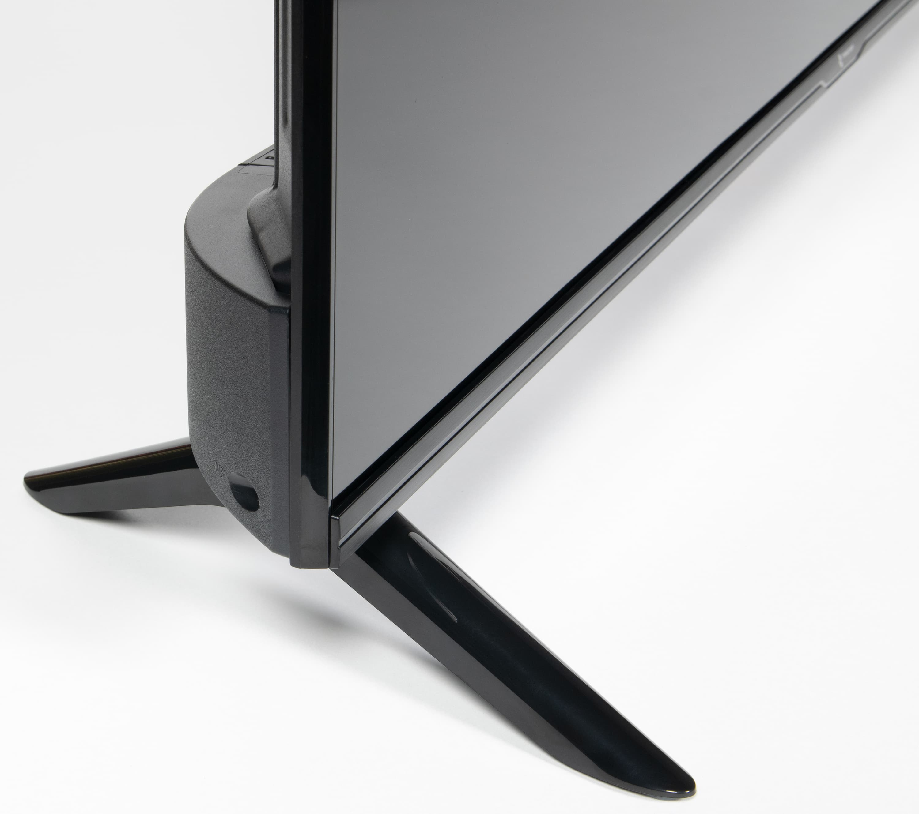 Жесткость конструкции соответствует весу телевизора. Телевизор стоит устойчиво, без видимого наклона. Расстояние между крайними точками ножек 109 см.
