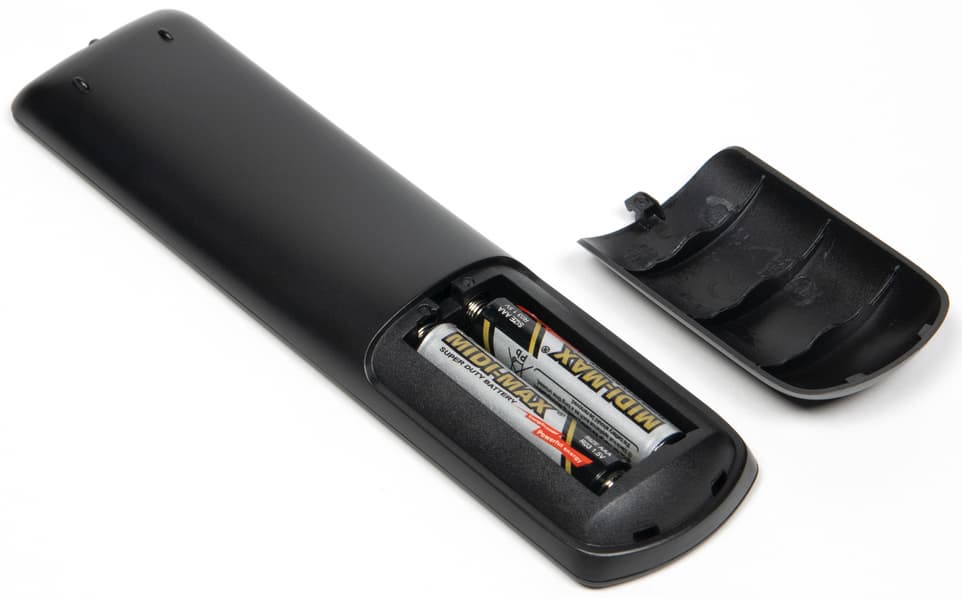 Пульт небольшой (15,2×3,9×1,7 см) и легкий (60 г с элементами питания).