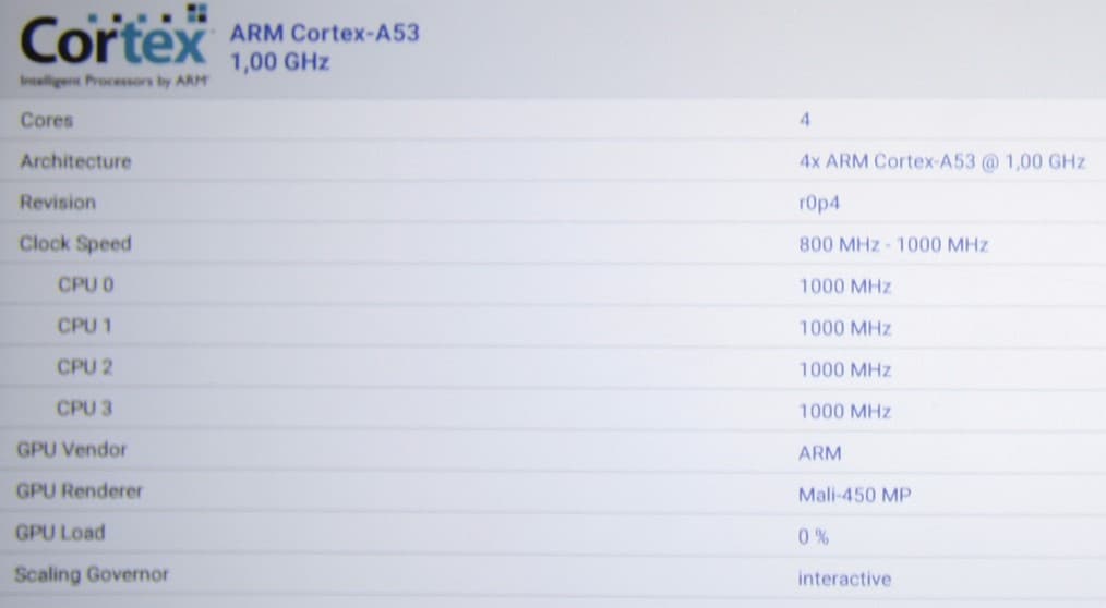 Программной платформой для этого проектора служит операционная система Wanbo OS, основанная на Android версии 9.0. Конфигурацию аппаратной части поясняют данные программы CPU-Z: