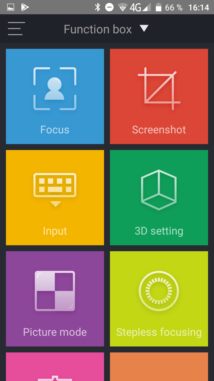 Для ее функционирования необходимо, чтобы проектор и мобильное устройство находились в одной сети. Программа предоставляет функции пульта ДУ с экранными кнопками, координатного ввода, быстрого доступа к паре-другой функций проектора (фокусировка, снятие снимка с экрана, установки стереоскопического режима, выбор профиля изображения, очистка памяти).