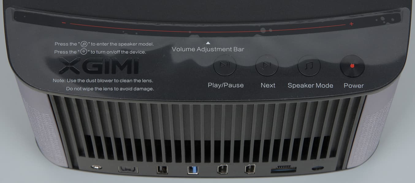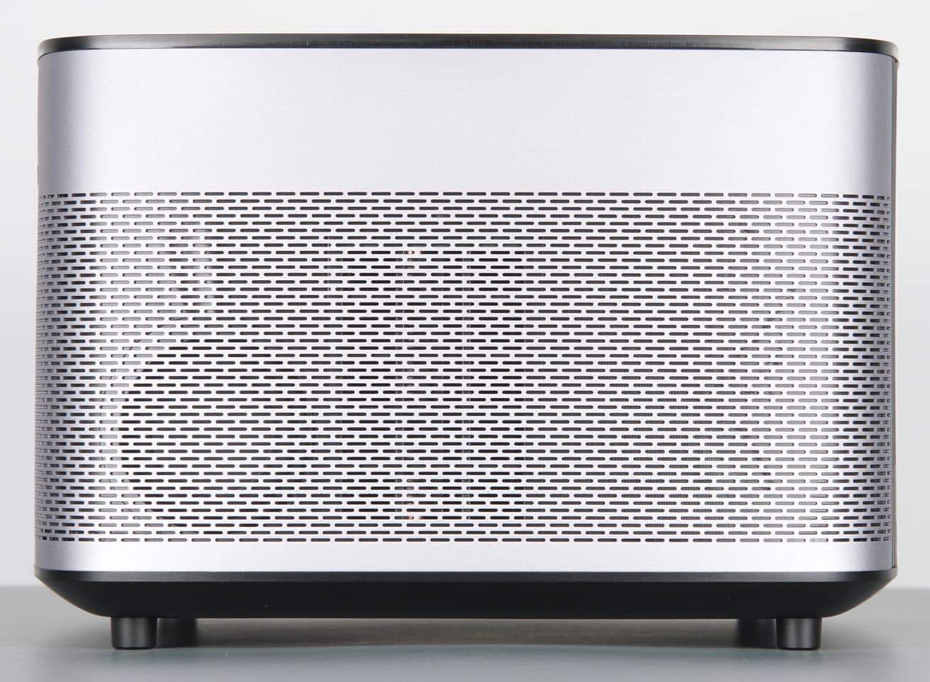 За решетками на правом и левом боках можно рассмотреть по громкоговорителю с круглыми диффузорами, расположенные ближе к передней части проектора.