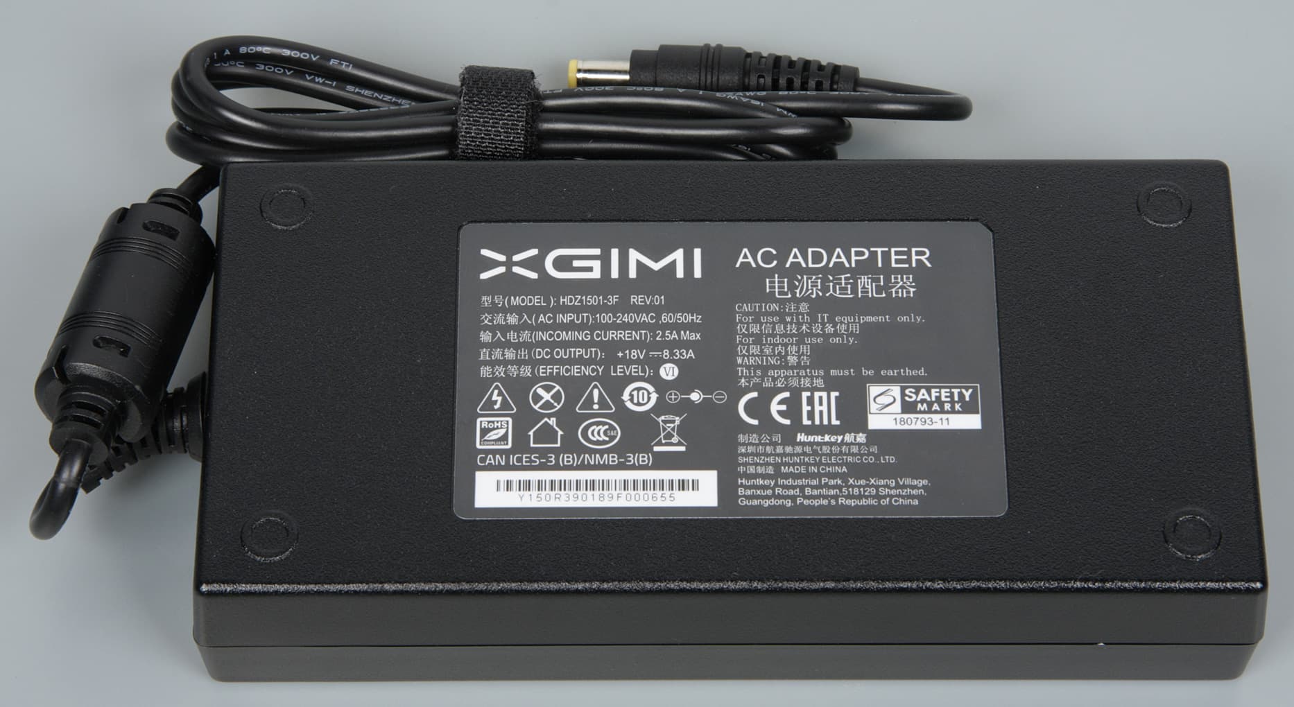 Масса всего комплекта с коробкой вместе составляет 4 кг, масса самого проектора — 2,5 кг, блок питания с кабелем питания вместе тянут на 0,7 кг. Габариты проектора: 21,5 см (Ш) на 21 см (Г) на 13,5 см (В).