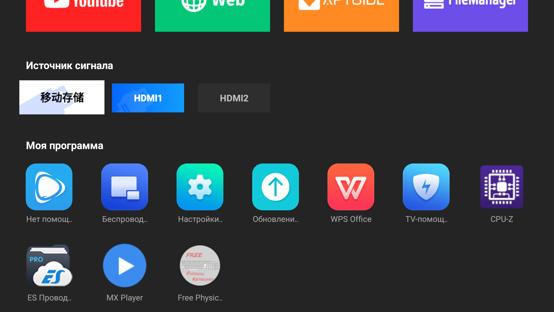 Для воспроизведения мультимедийного контента можно использовать штатные плееры, но лучше установить свой любимый. Мы рекомендуем сначала установить альтернативный файловый менеджер, например, ES File Explorer File Manager. Устанавливать придется из файла APK (предварительно переименованного APK.1), так как нормального магазина приложений на проекторе не установлено (в том, что есть, всего 9(!) приложений, считая уже установленный YouTube). Энтузиасты могут также попробовать установить Google Play Store — впрочем, установка хотя бы файлового менеджера уже значительно облегчает доступ к ресурсам проектора и установку сторонних приложений. В ходе тестирования из дополнительных программ мы установили плеер MX Player и CPU-Z.