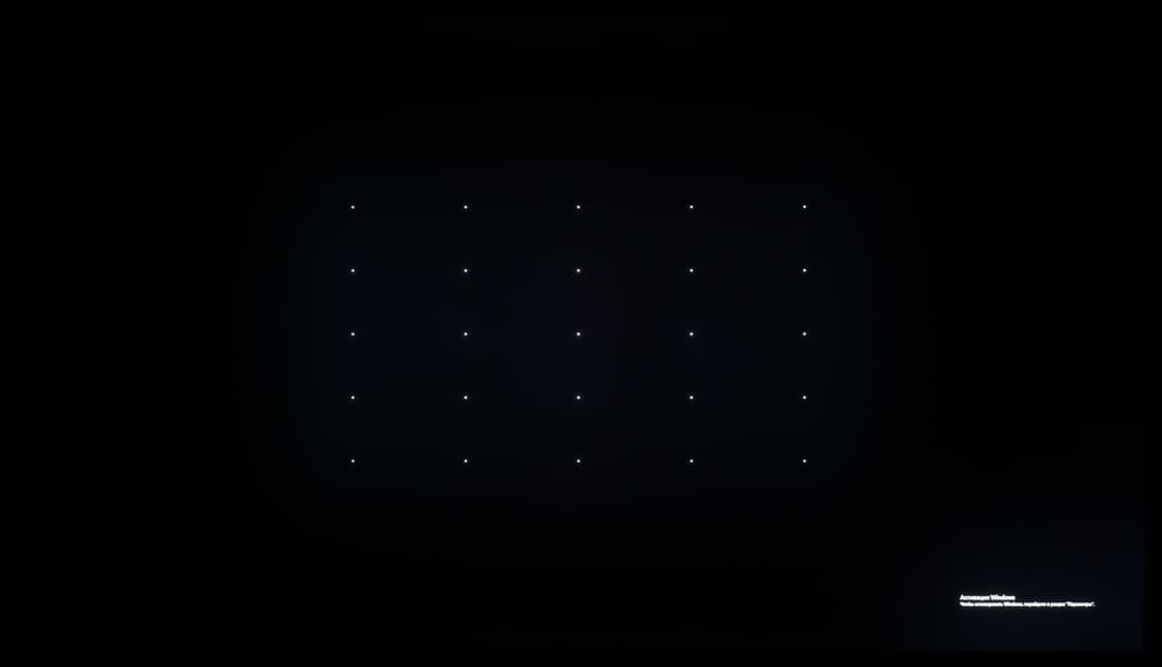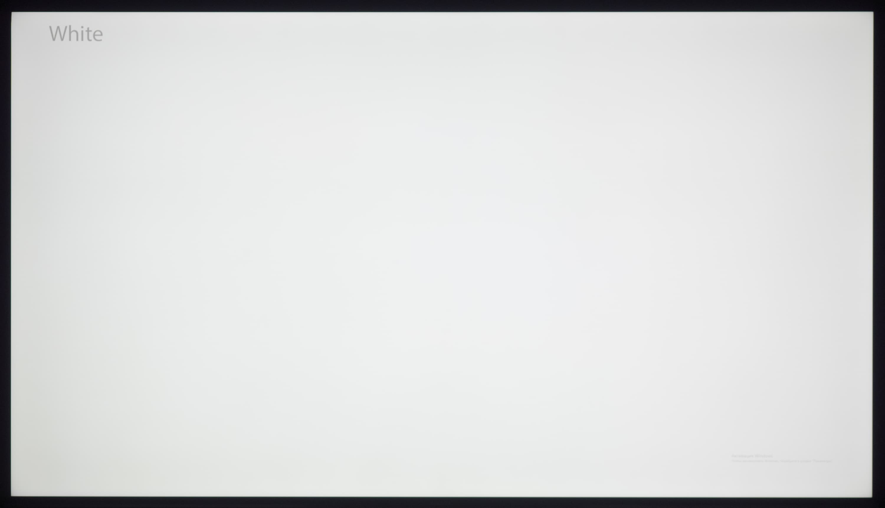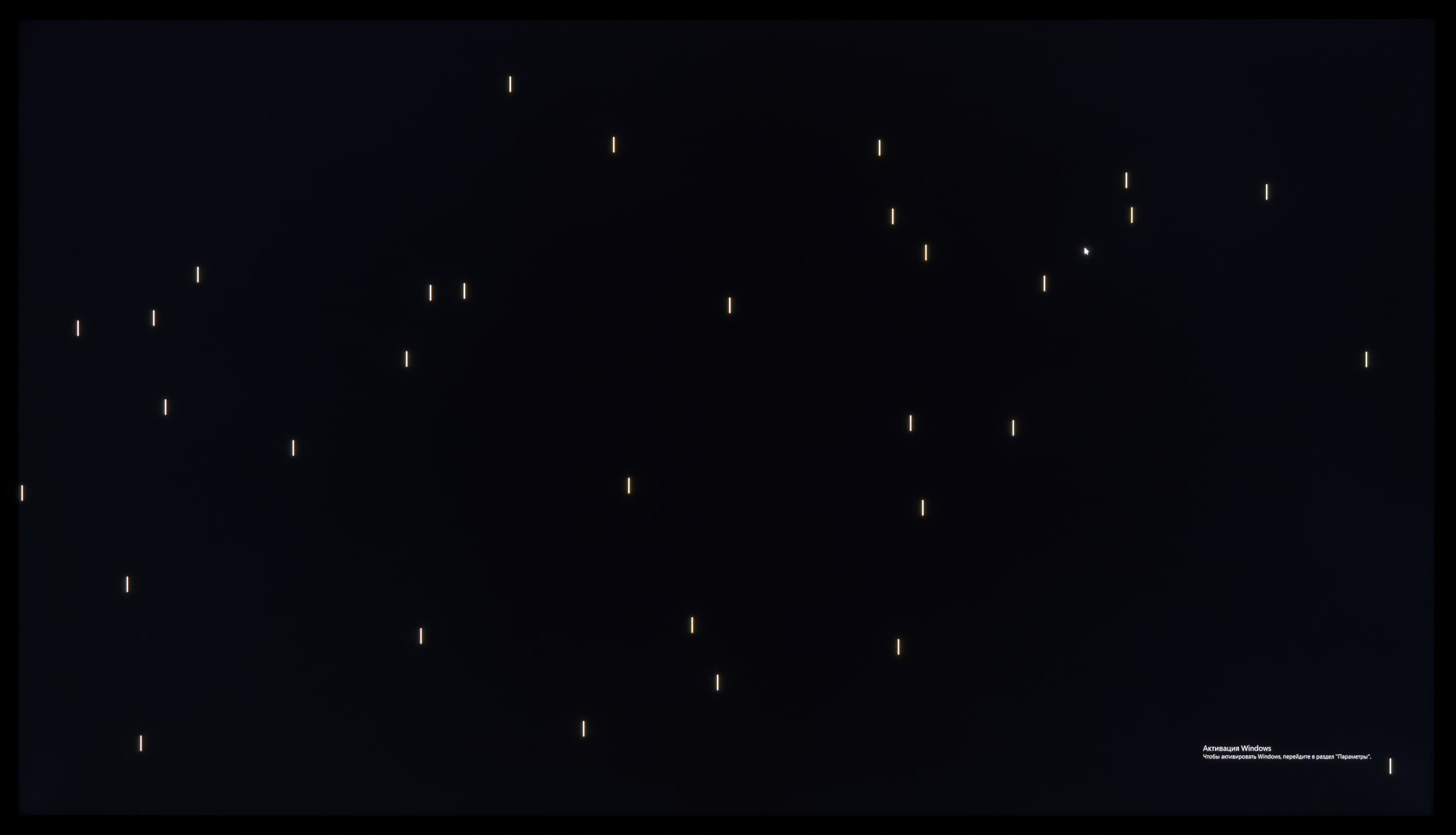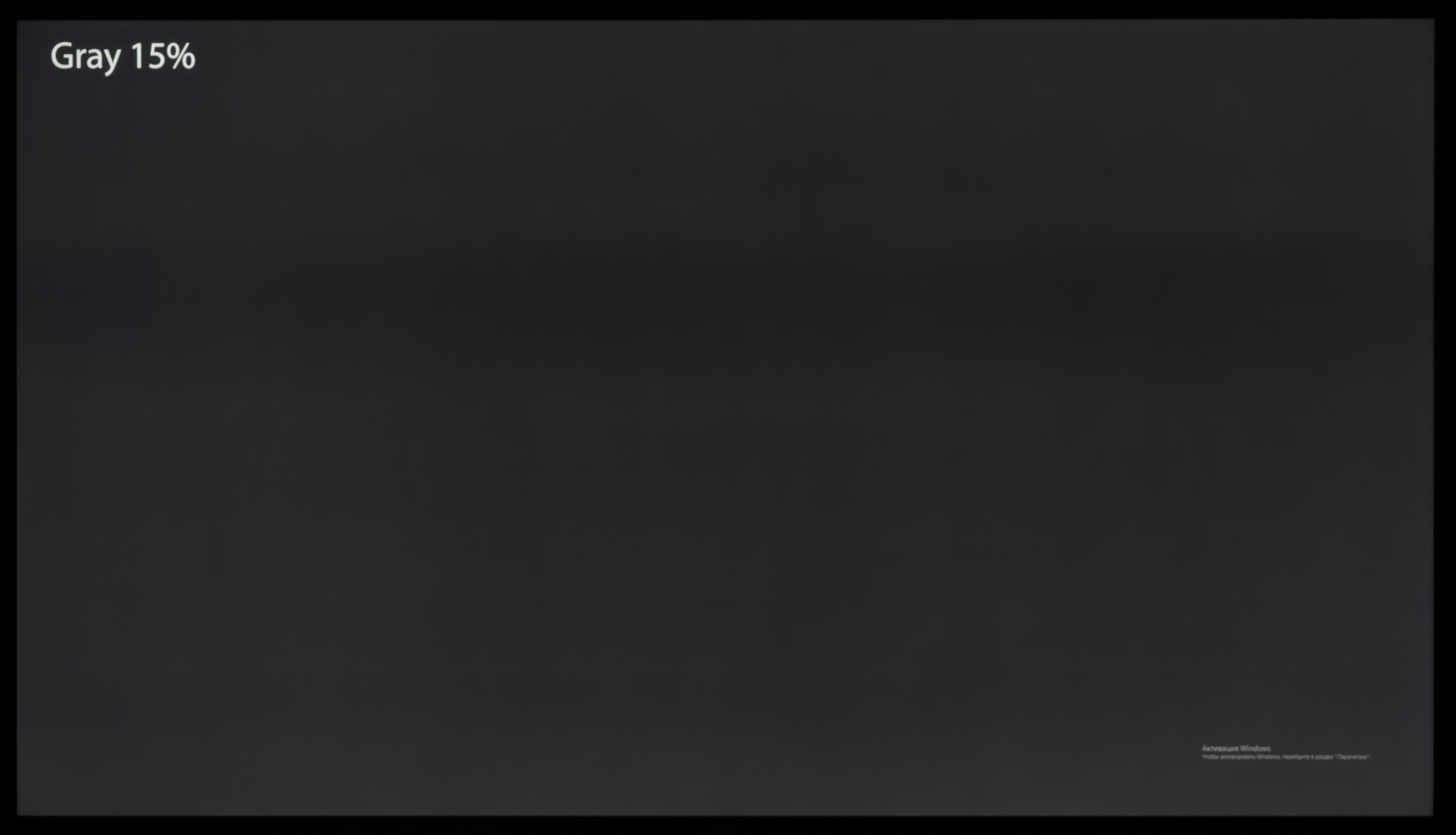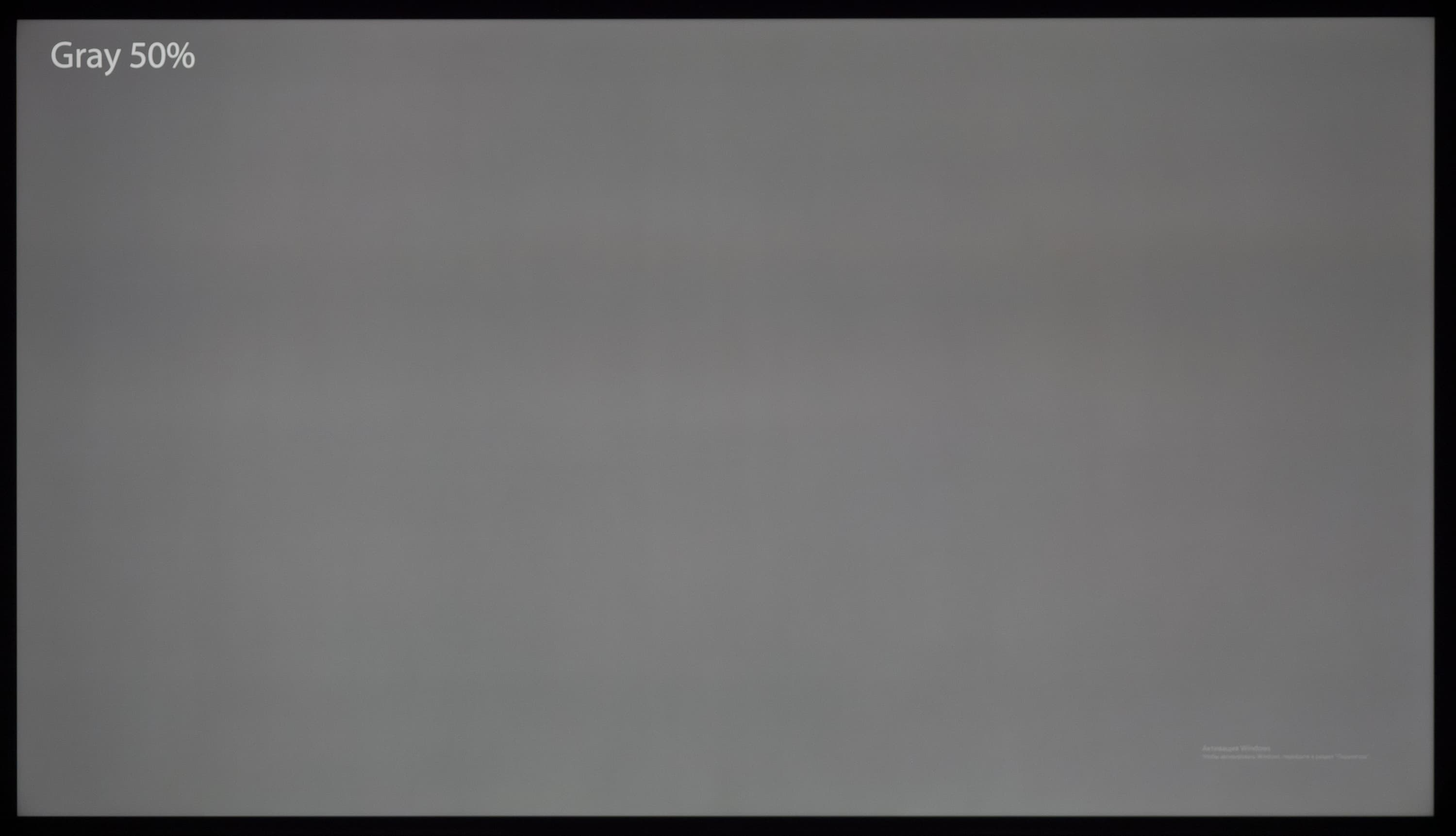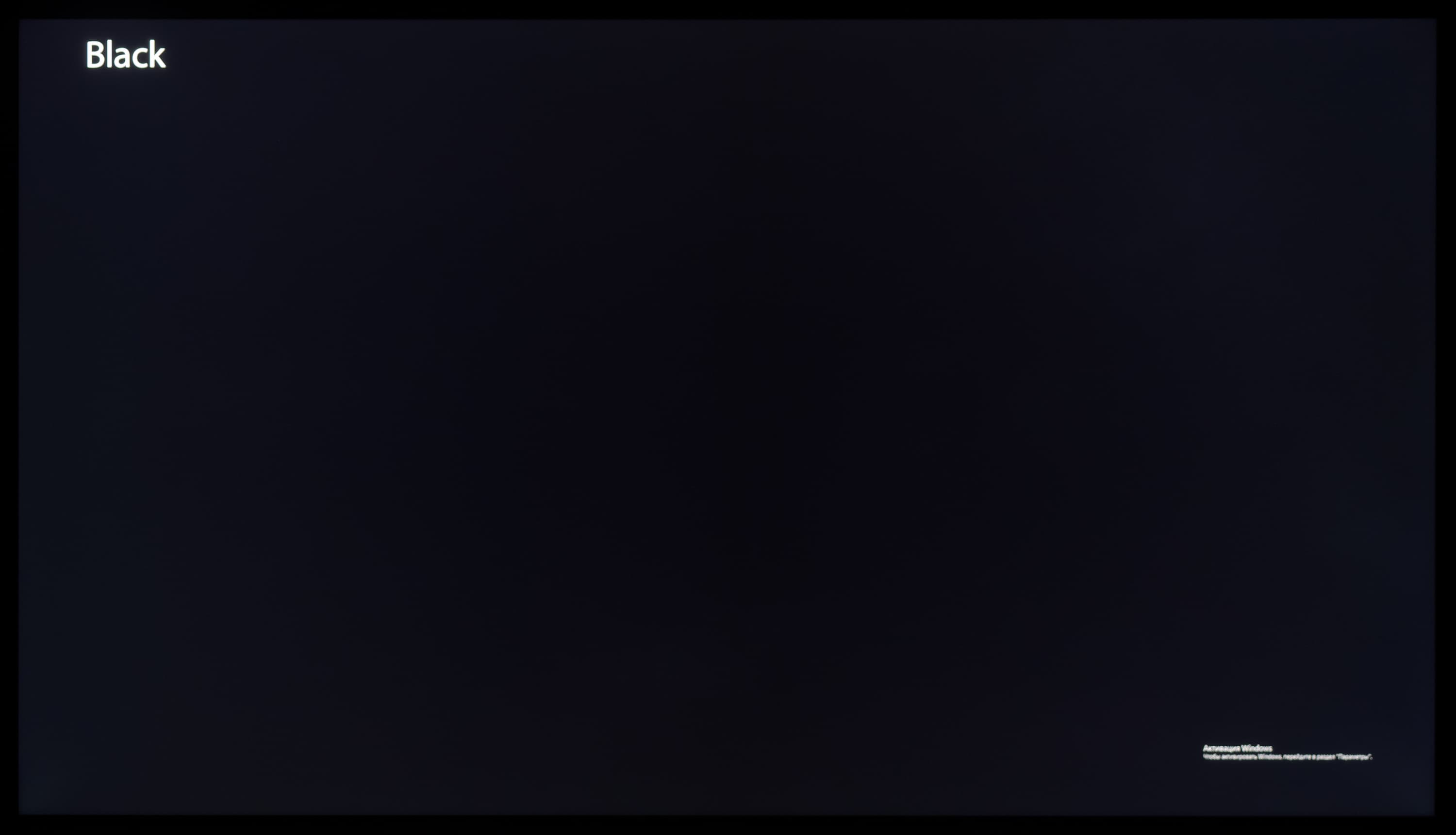 А вот при выводе черного поля равномерность подсветки оказалась очень хорошей, без визуально выраженных дефектов однородности по полю матрицы, что подтверждает фотография, сделанная с расстояния до экрана в 3 метра.