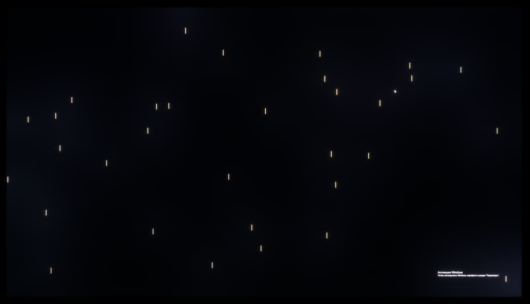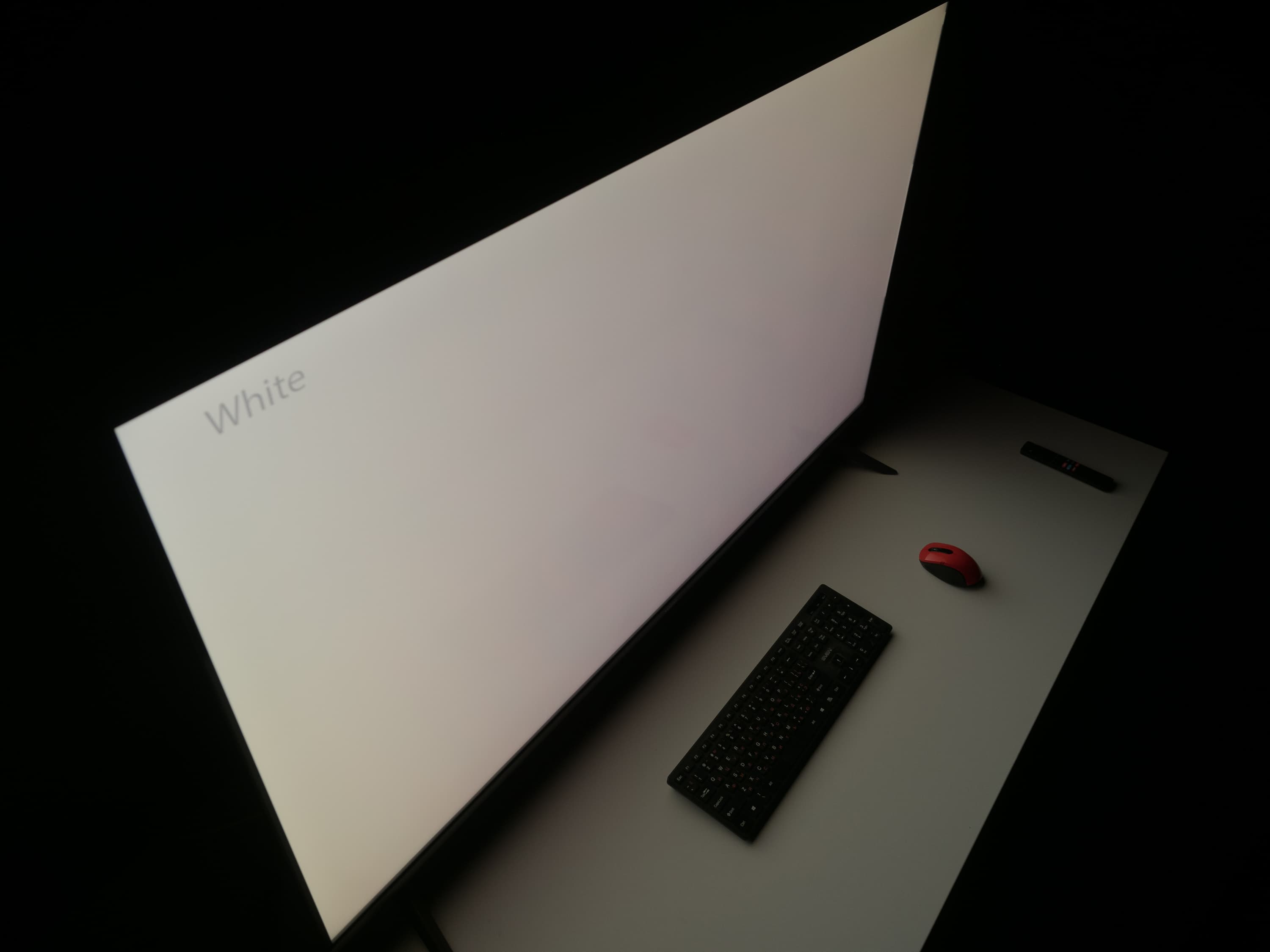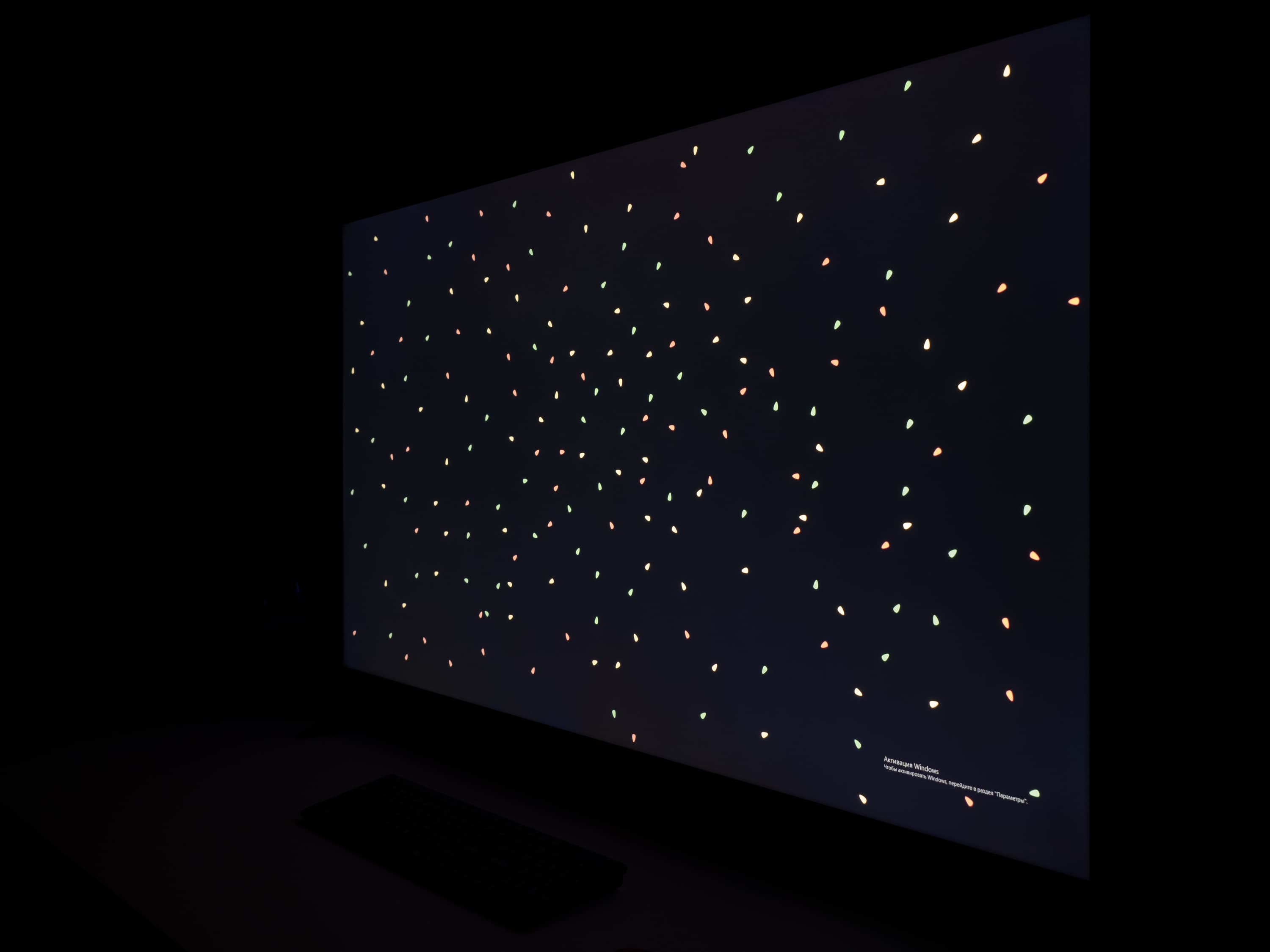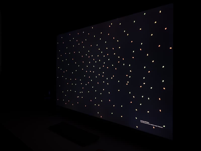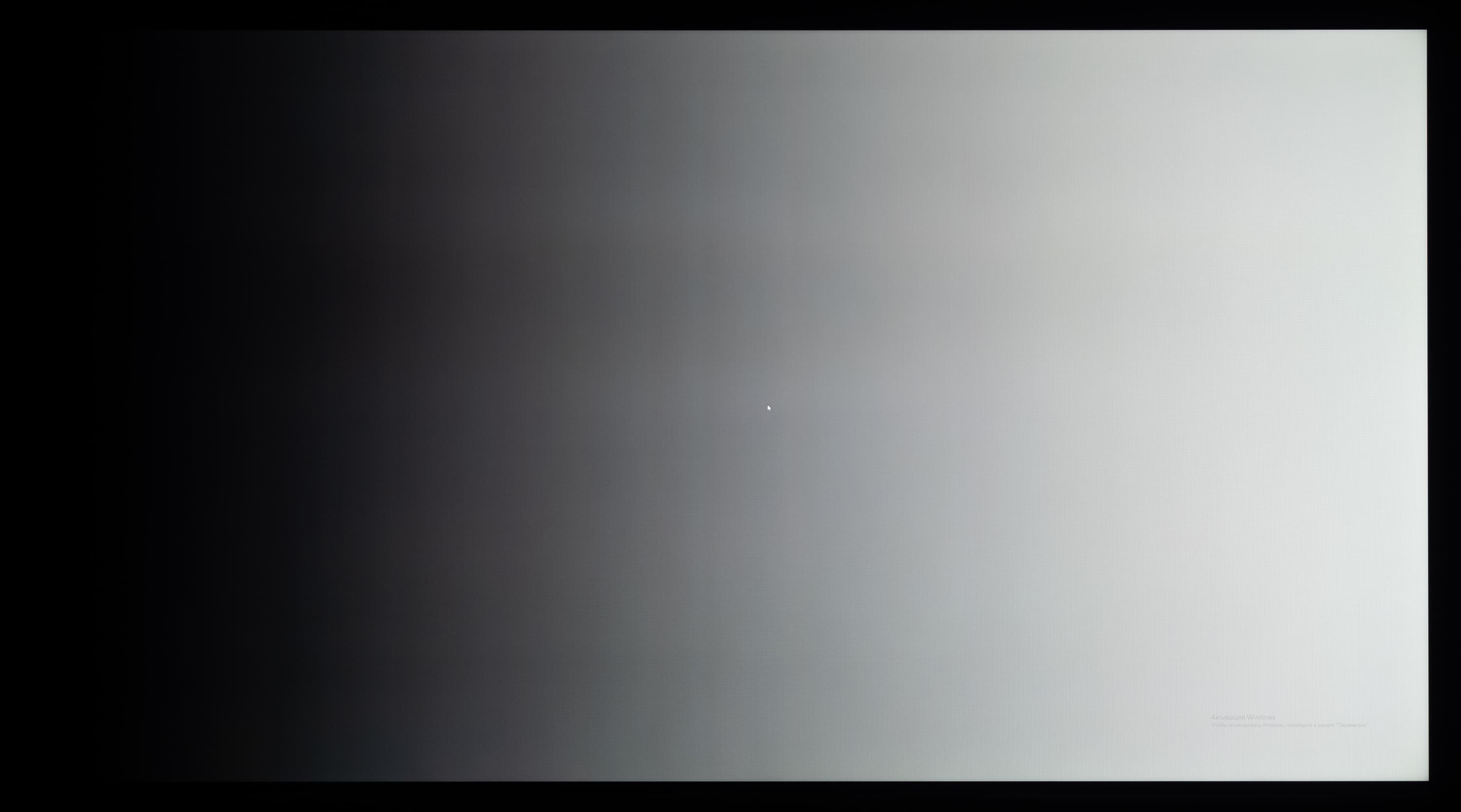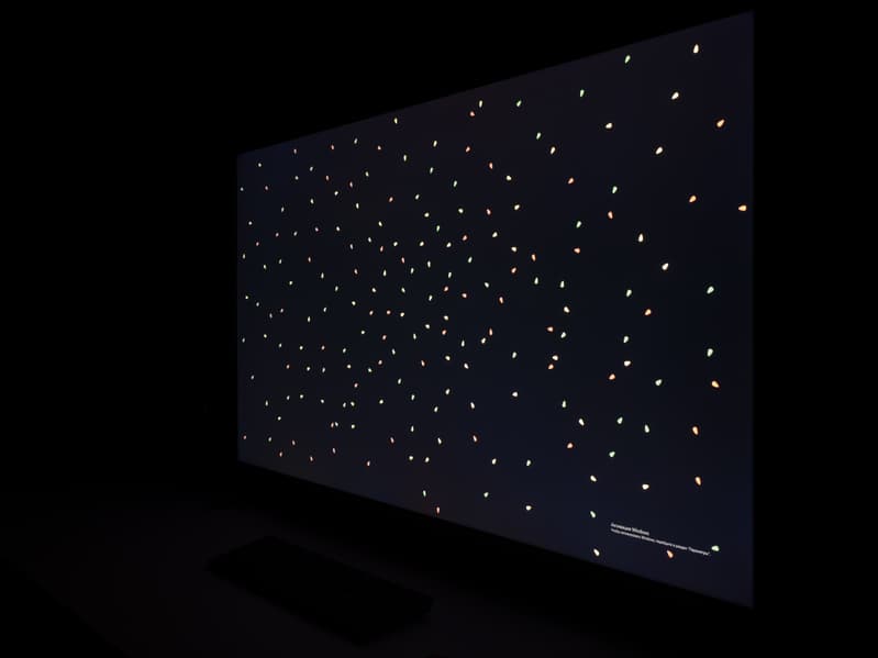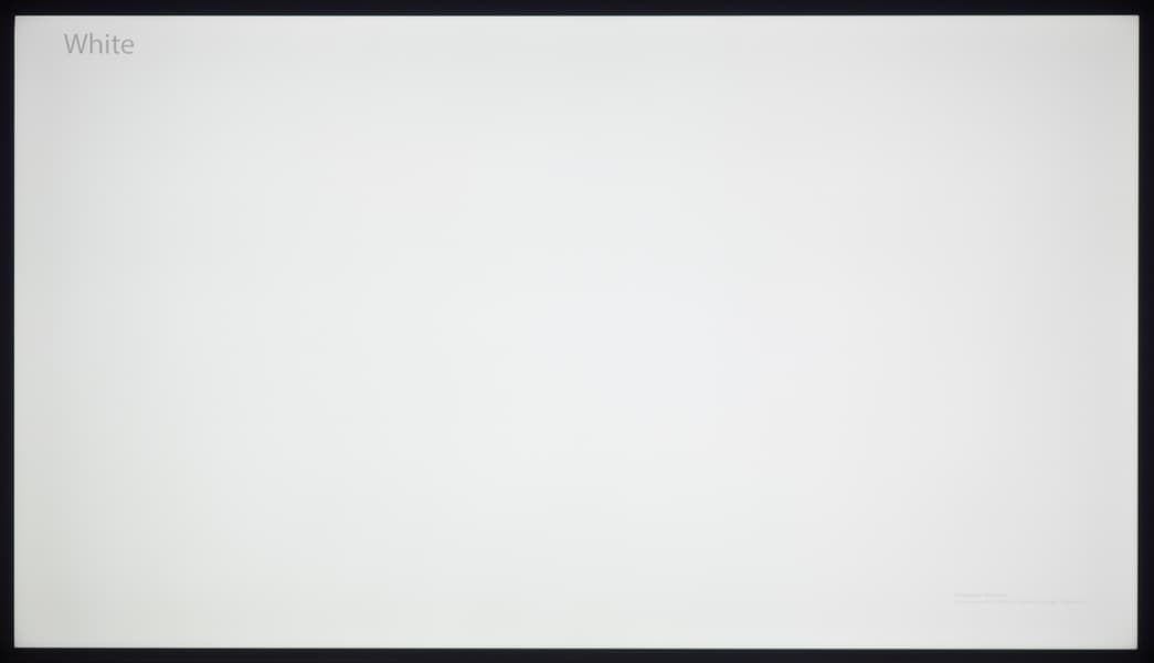 А вот при выводе черного поля равномерность подсветки оказалась очень хорошей, без визуально выраженных дефектов однородности по полю матрицы, что подтверждает фотография, сделанная с расстояния до экрана в 3 метра.
