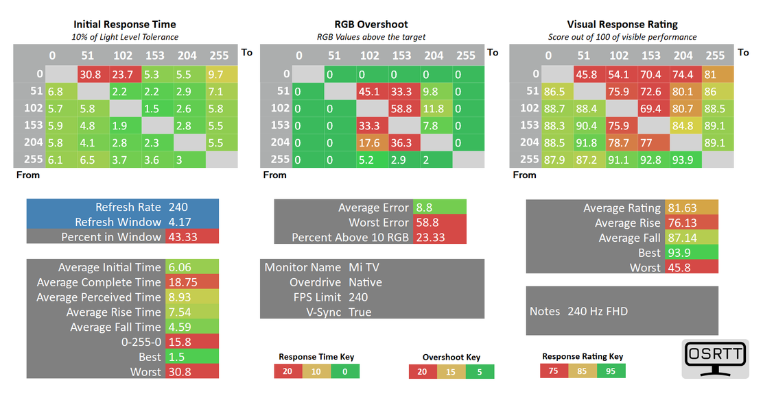 При переходе к 240 Гц со сниженным разрешением до уровня Full HD пользователь столкнется со схожей ситуацией: 77,6 мс в среднем при выключенном «игровом режиме» и 10,2 мс с активированным!