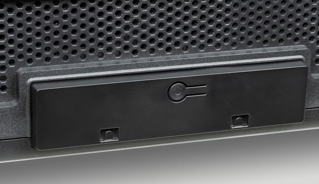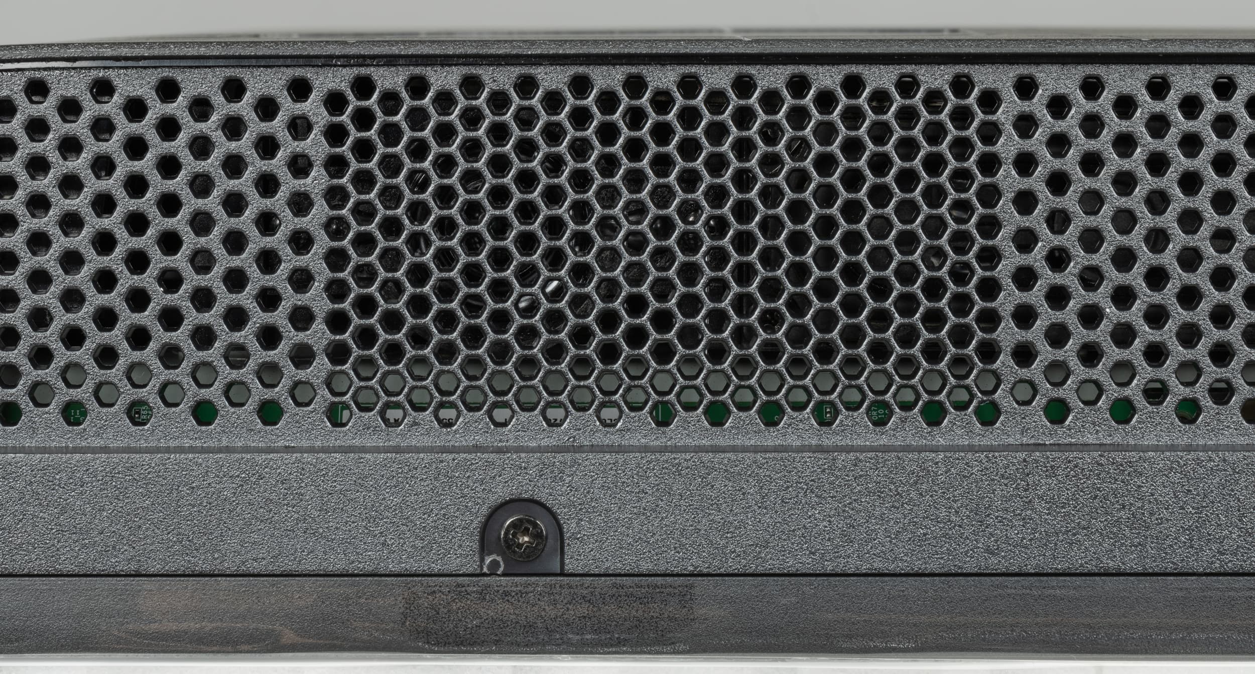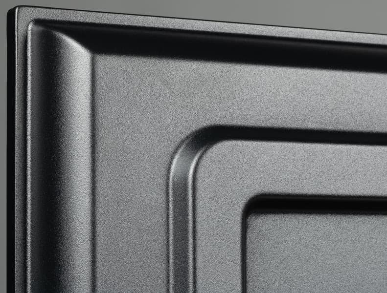 Выступающий назад пластиковый кожух в нижней части с заходом на нижний торец изготовлен из черного пластика с матовой, слегка шершавой поверхностью и нанесенными разделительными полосами в обеих плоскостях, образующих под 150 квадратных элементов.