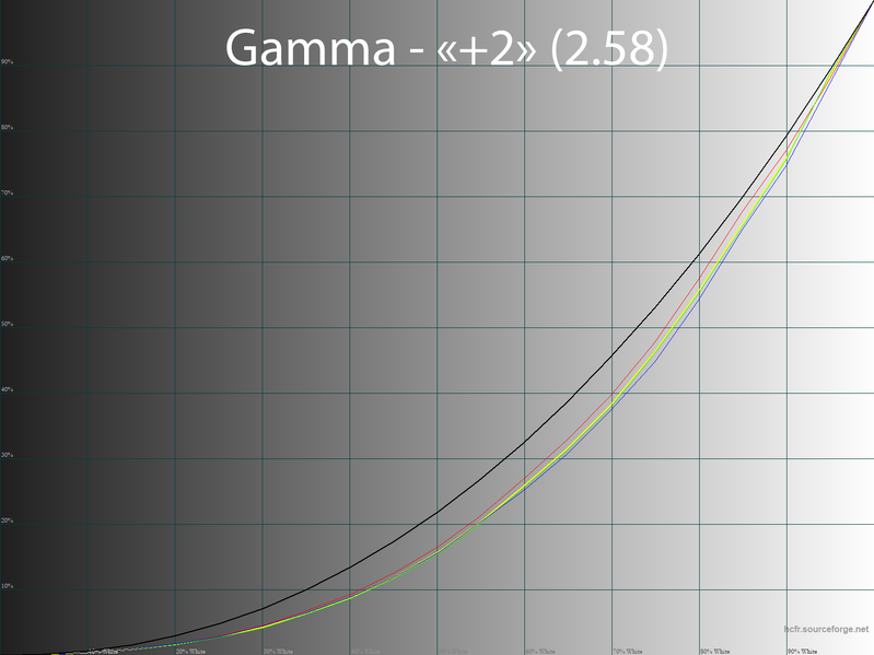 В качестве дополнительной ручной настройки можно воспользоваться коррекцией гаммы в диапазоне от −2 до +2 единиц. По умолчанию выставлено нулевое значение, шаг — единица. В этом случае при выставленной кривой BT.1886 можно получить гамму от 1,86 до 2,58. В качестве экспериментов с контрастностью картинки — в самый раз. Можно смело пользоваться, если вы знаете, зачем вам это надо.