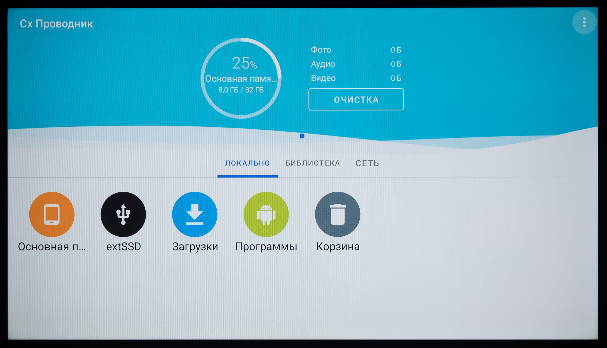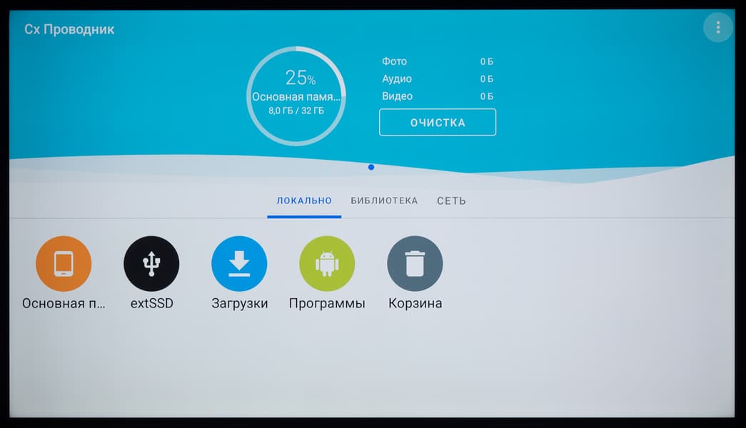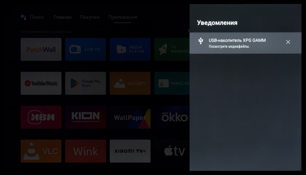 При подключении внешнего накопителя система уведомляет о его обнаружении и предлагает перейти в медиаменеджер. При переходе к этому уведомлению (в том числе и через отдельный блок со всеми собранными системой уведомлениями) вы можете открыть доступ к новому диску через встроенный проводник (с крайне ограниченной функциональностью), исправить ошибки (помогает редко) и провести его форматирование средствами системы. Но делать это вам придется редко — все наши накопители с тремя разными файловыми системами ТВ прекрасно отобразил и спокойно считывал и записывал данные.