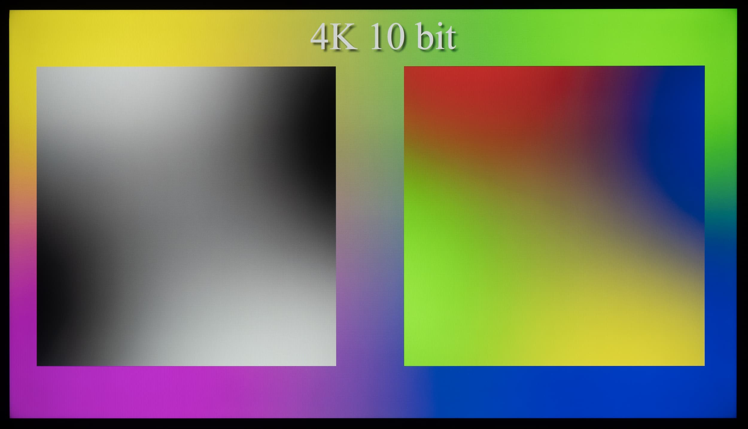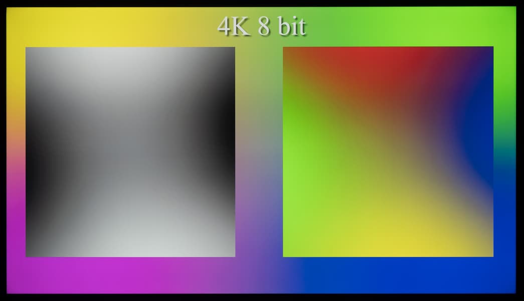 Наглядно видно, что телевизор способен выводить градиенты в 10-битном режиме более качественно, чем в стандартном 8-битном. Но в большей степени это будет актуально при выводе HDR-контента с соответствующими требованиями к ТВ. Использование же программной эмуляции до 12 бит через драйвер видеокарты не приносит видимых преимуществ над 10-битным выводом сигнала.