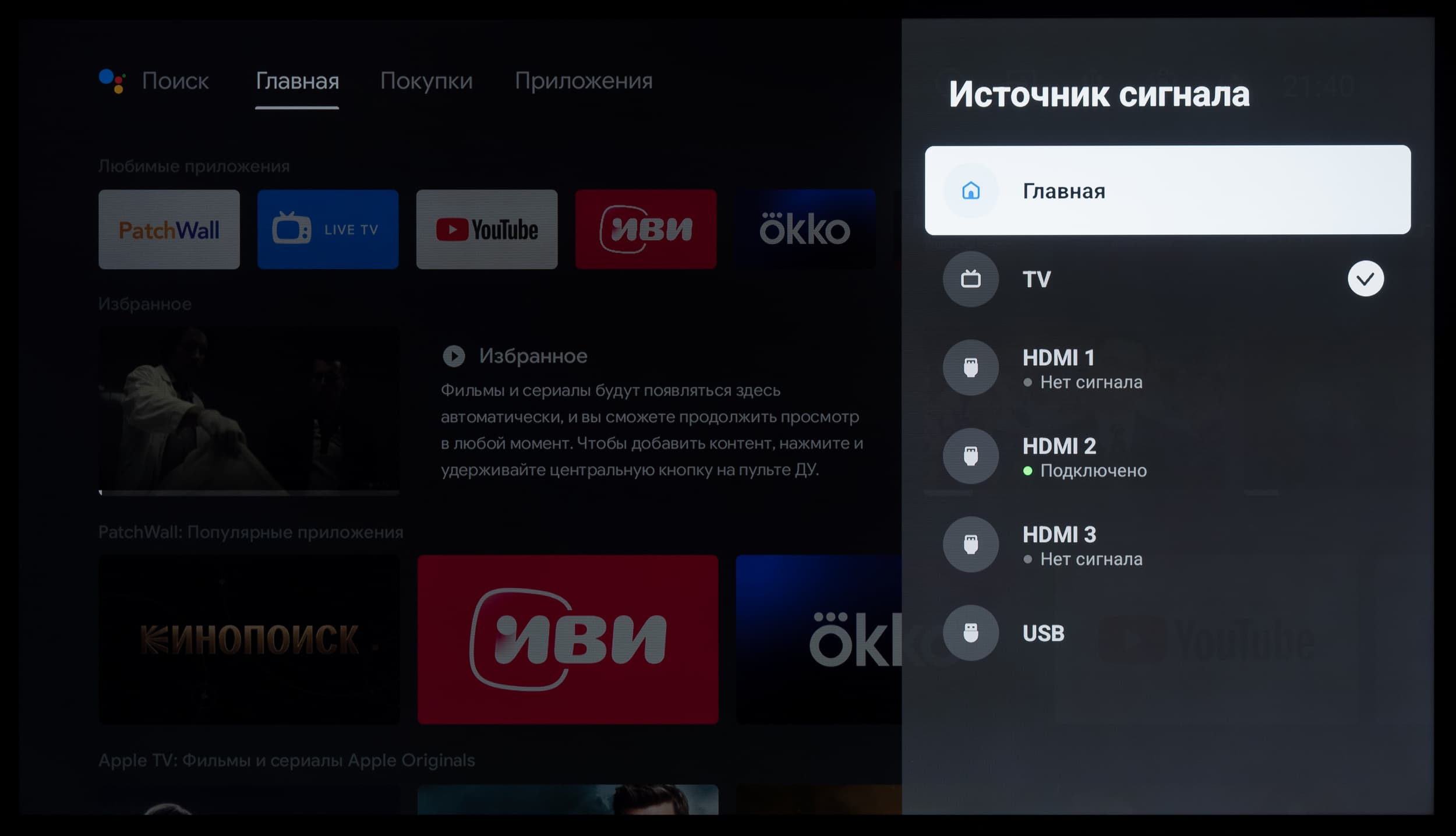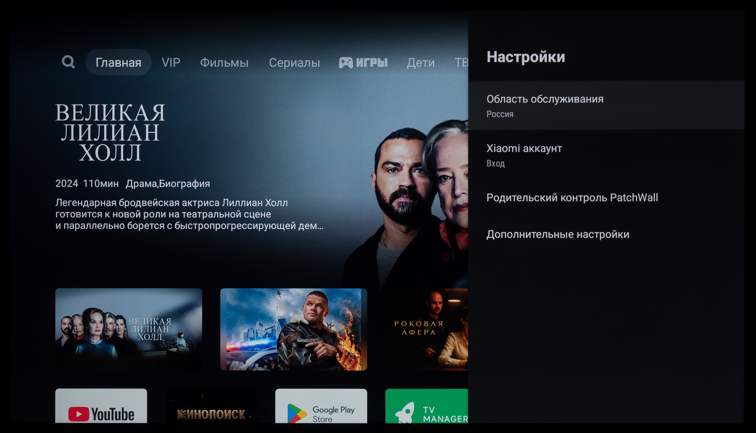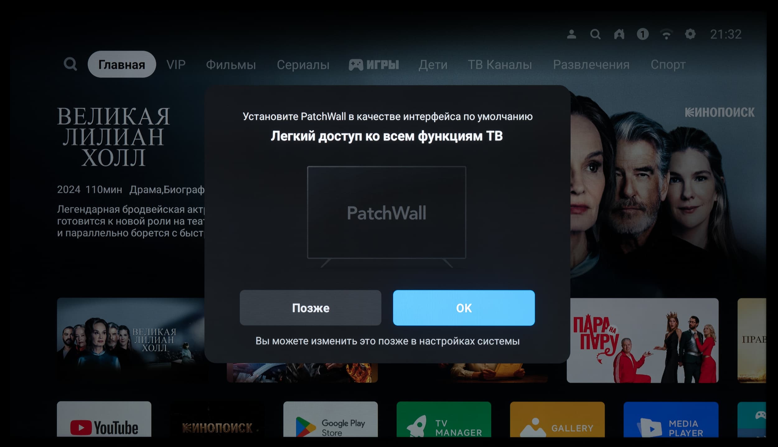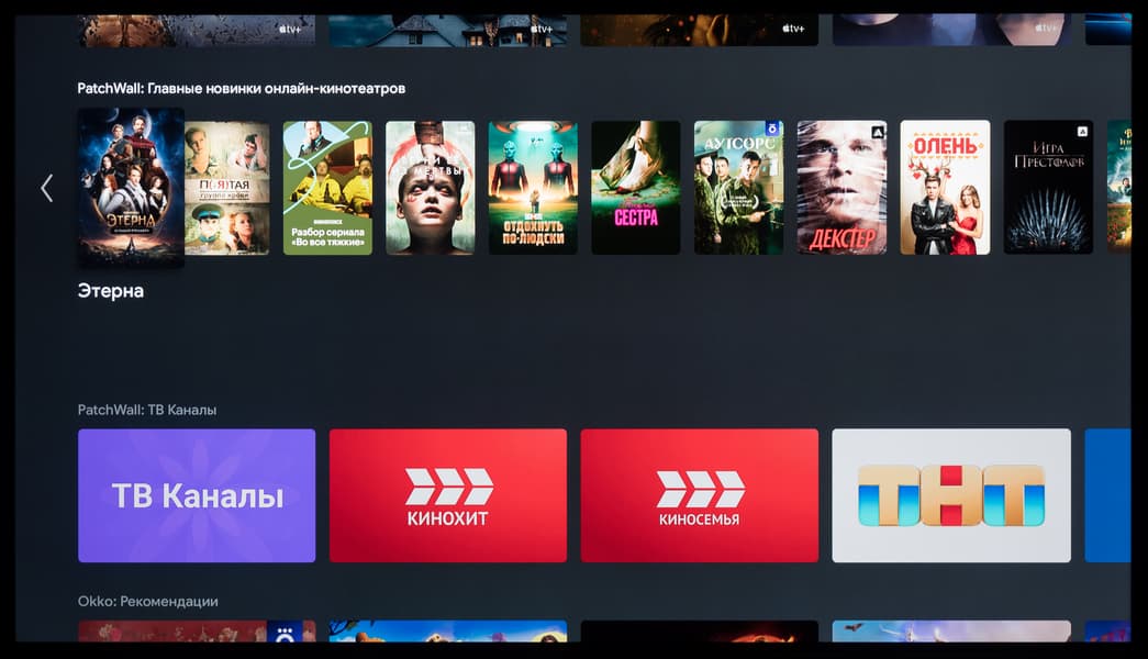 Отдельно хотелось бы поговорить про оболочку PatchWall, которую система часто предлагает установить в качестве замены домашнего экрана. В таком случае вы получите нечто похожее на ТВ-продукты «Яндекса» со встроенным «КиноПоиском».