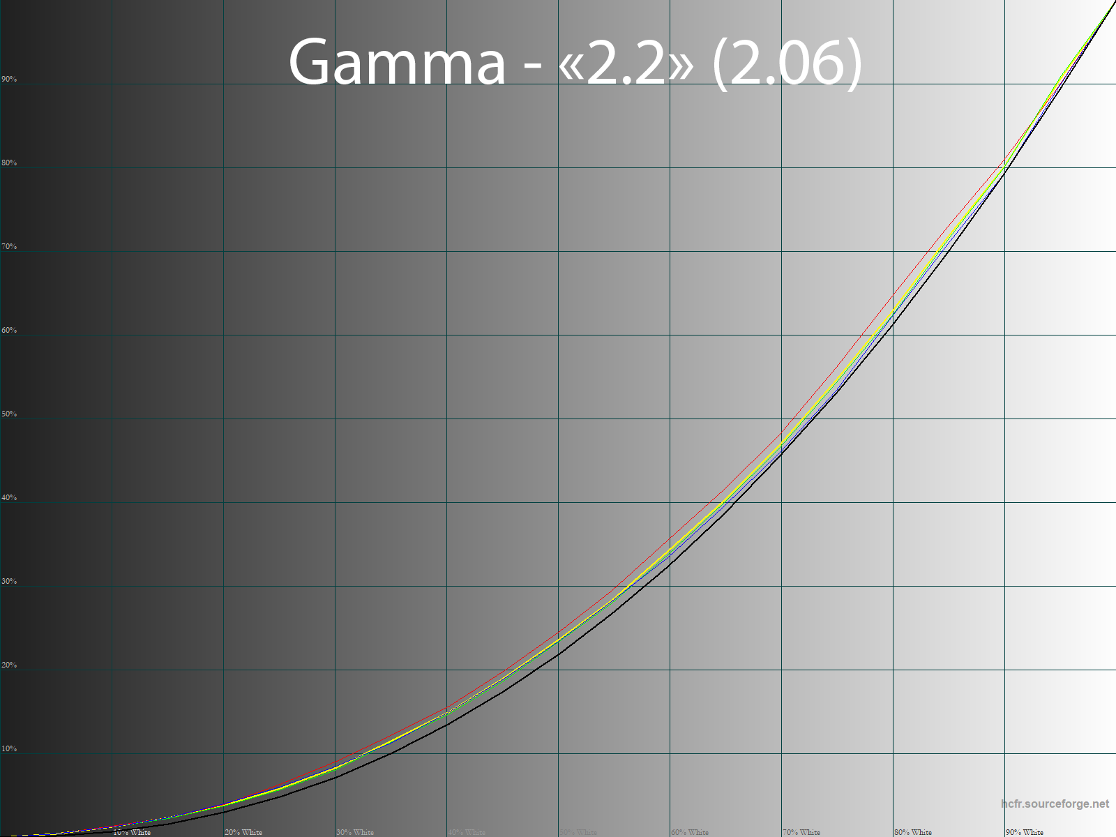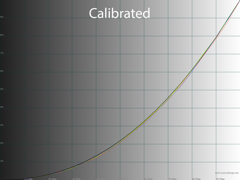 Правки в LUT видеокарты позволили скорректировать недостаточно корректные гамма-кривые и выйти на необходимый уровень точности. Среднее значение гаммы составило 2,22 — контраст слегка выше планируемого, но на фоне заводских установок это мелочи жизни.