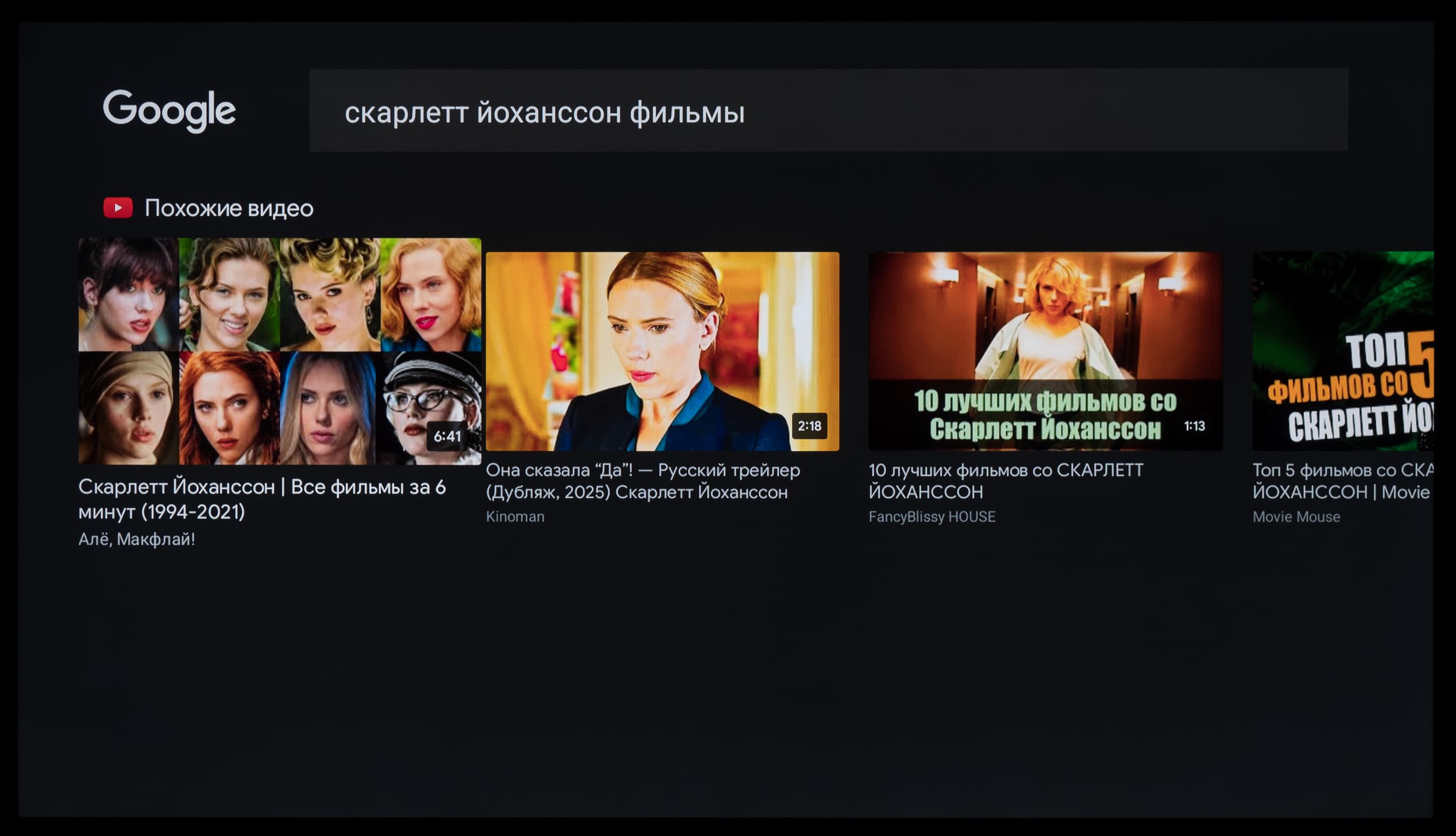 По словам и фразам, не распознанным как команды, выполняется поиск, и в результатах поиска будет предложен развлекательный контент, в том числе из YouTube, а иногда открывается страница приложения в магазине Google Play с названием, соответствующим поисковой фразе.