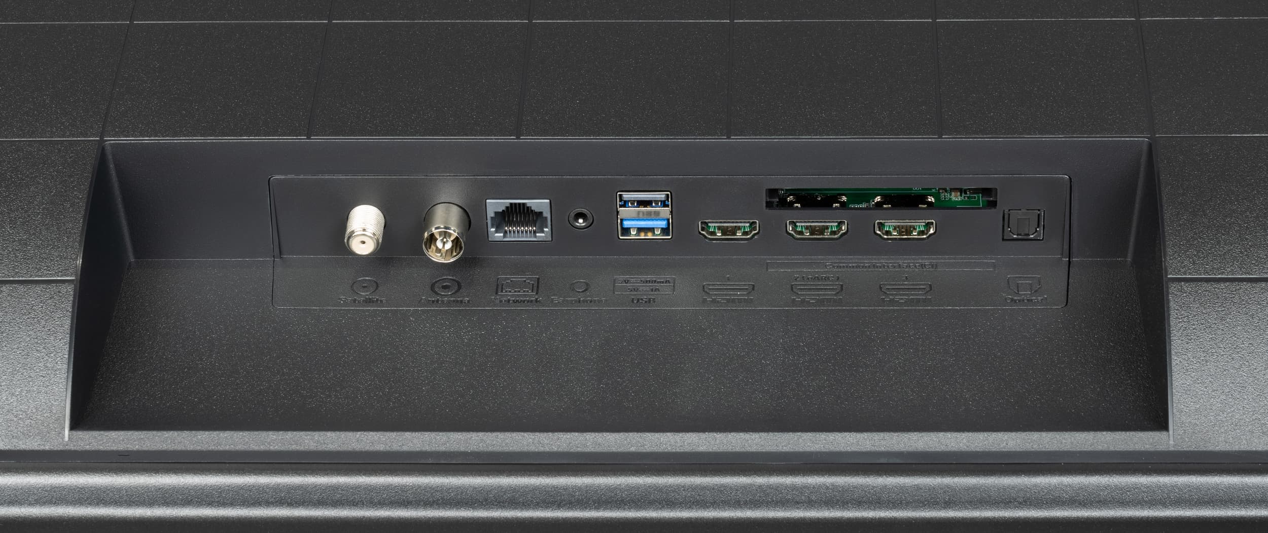 Большинство разъемов стандартные, полноразмерные, размещены более-менее свободно и находятся с одной стороны корпуса. Здесь же находится разъем для CI-карты (без использования какой-либо заглушки). Вопросы могут возникнуть только к расположению двух USB-разъемов различных версий при одновременном использовании двух крупногабаритных флэш-накопителей или прочих наборов устройств.