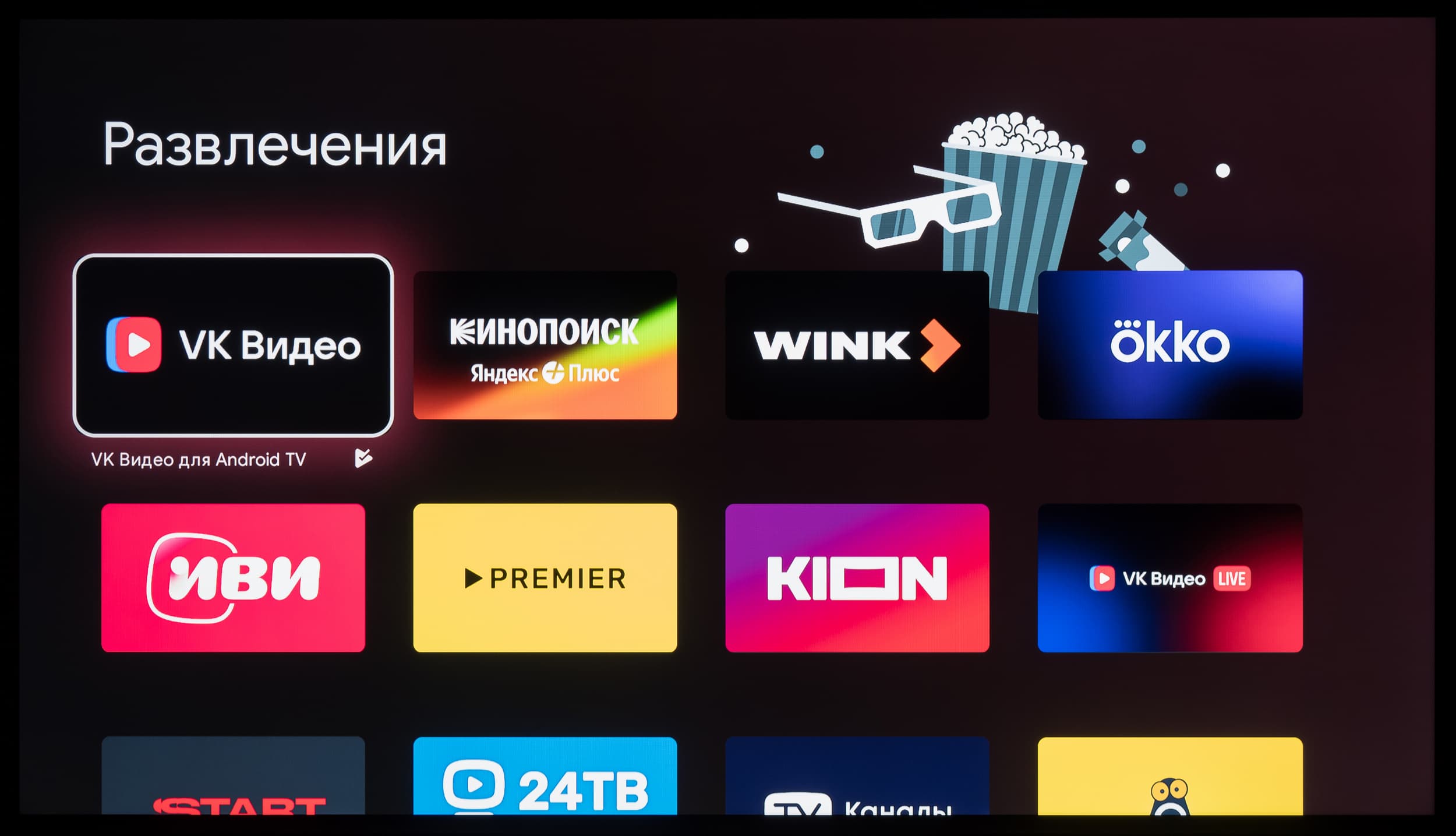 В телевизоре предустановлено достаточное количество приложений, в том числе разработчиков из СНГ, а также часть западного ПО, которое частично растеряло свою актуальность на территории РФ.