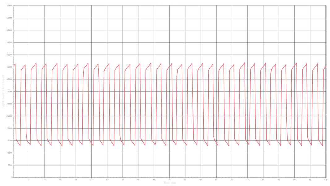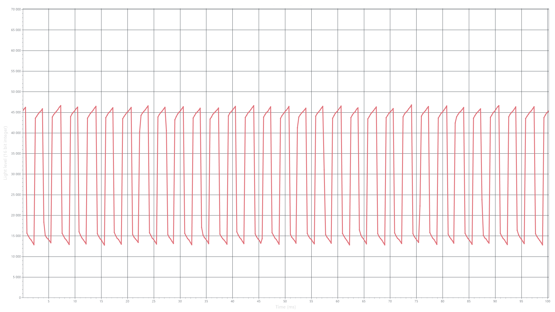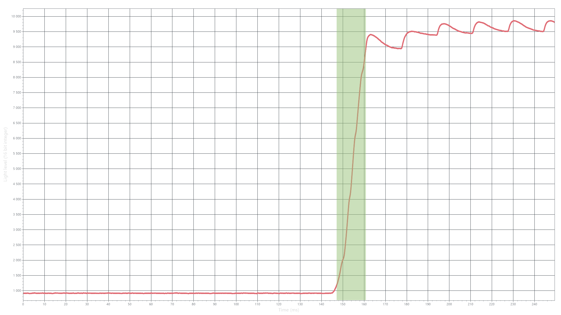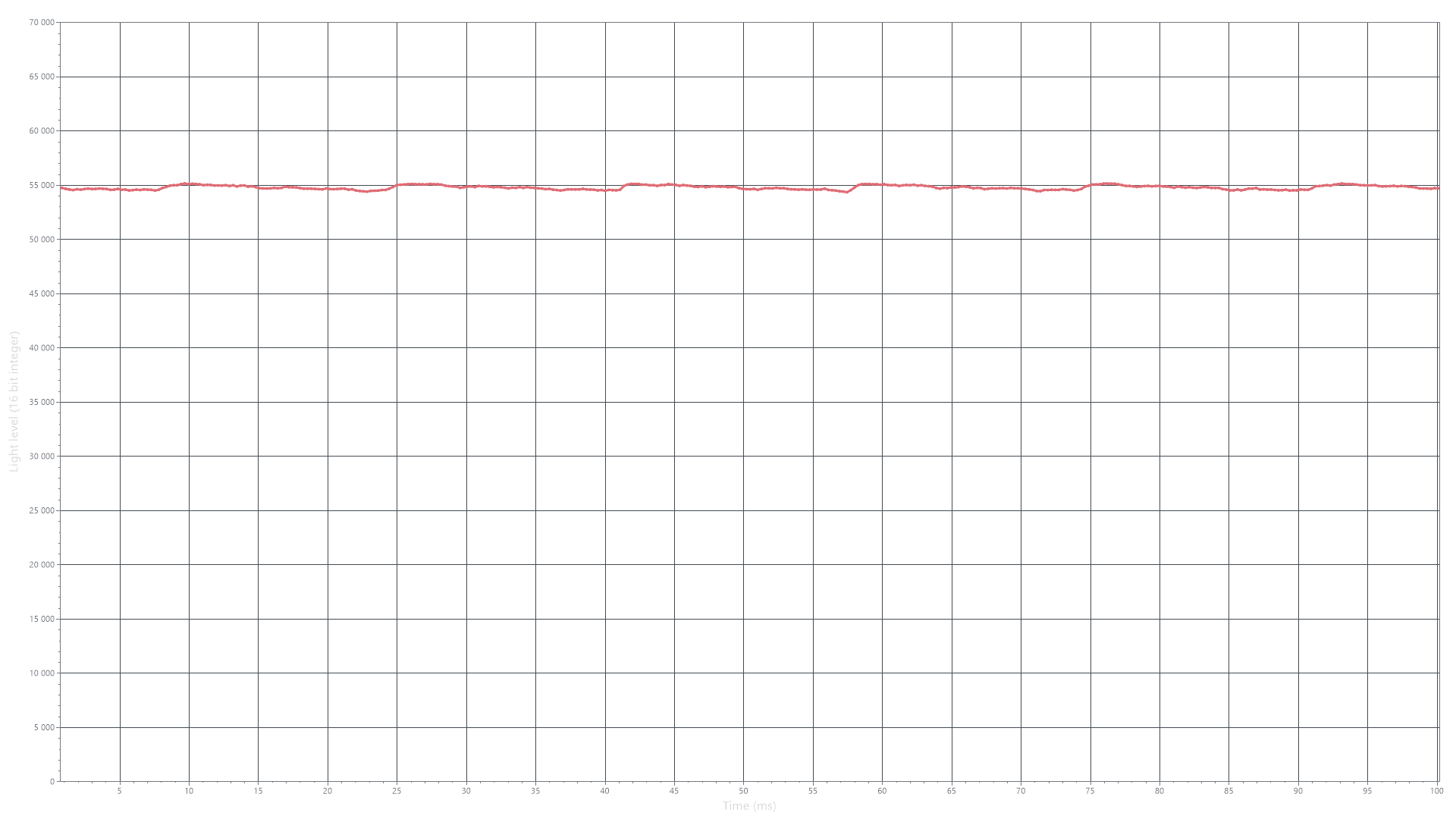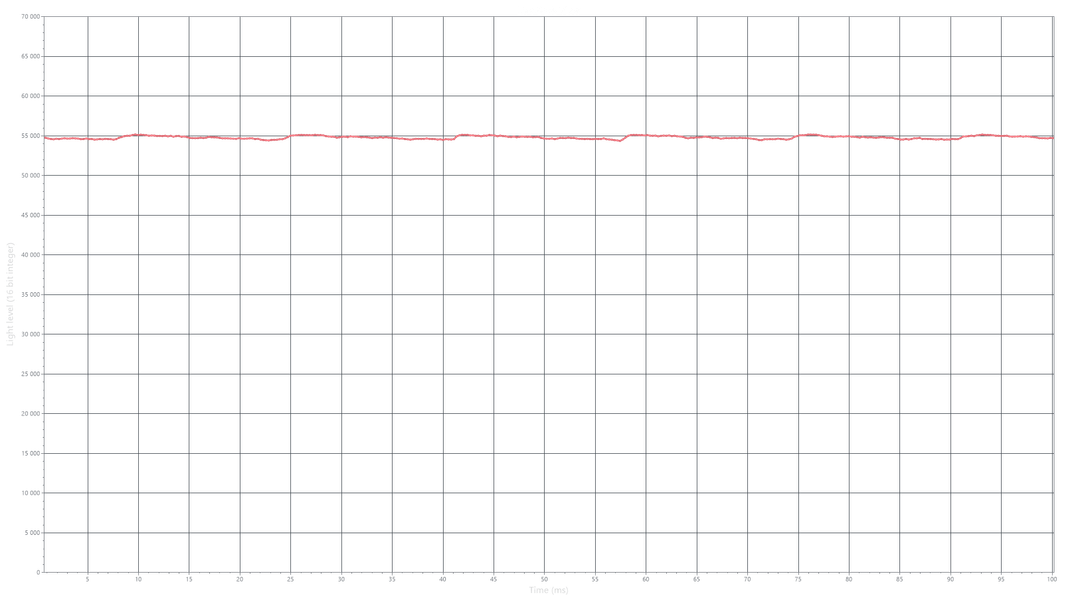 Выше представлены скриншоты результатов измерений белого поля при яркости подсветки в 100%, 50% и 0% соответственно, полученные с помощью прибора OSRTT. Используется частота 300 Гц, что может вызывать дополнительную нагрузку на глаза и даже приводить к ощущению рези в случае продолжительной работы за экраном, но всё же большинство потребителей не обратят на подобное мерцание внимания. Другими словами, всё крайне индивидуально.
