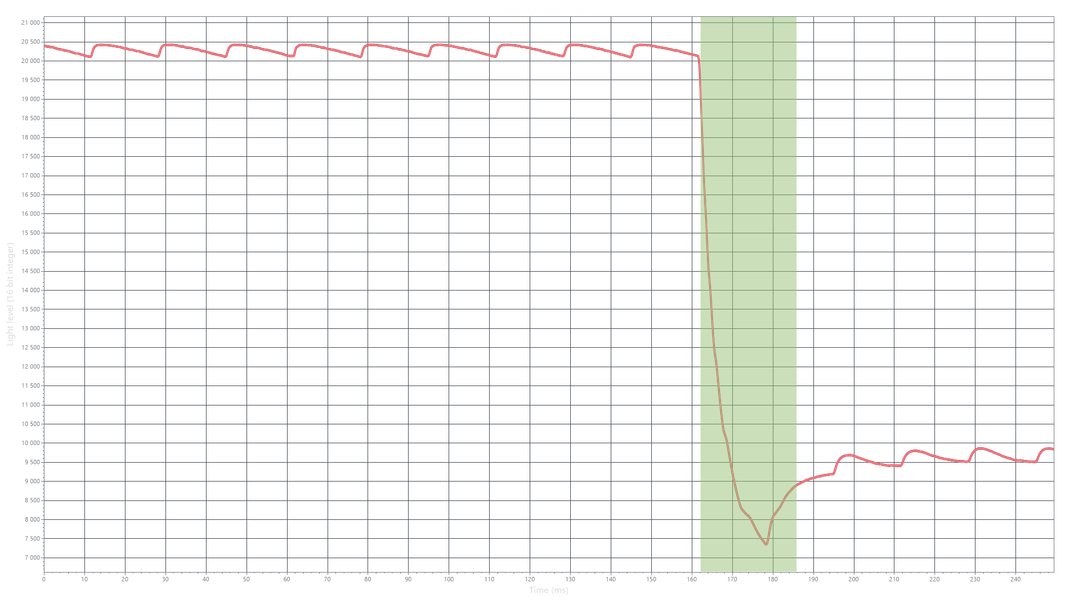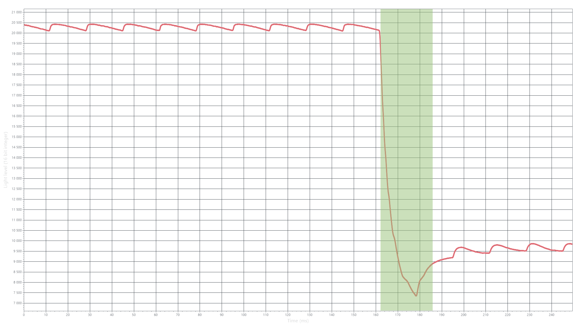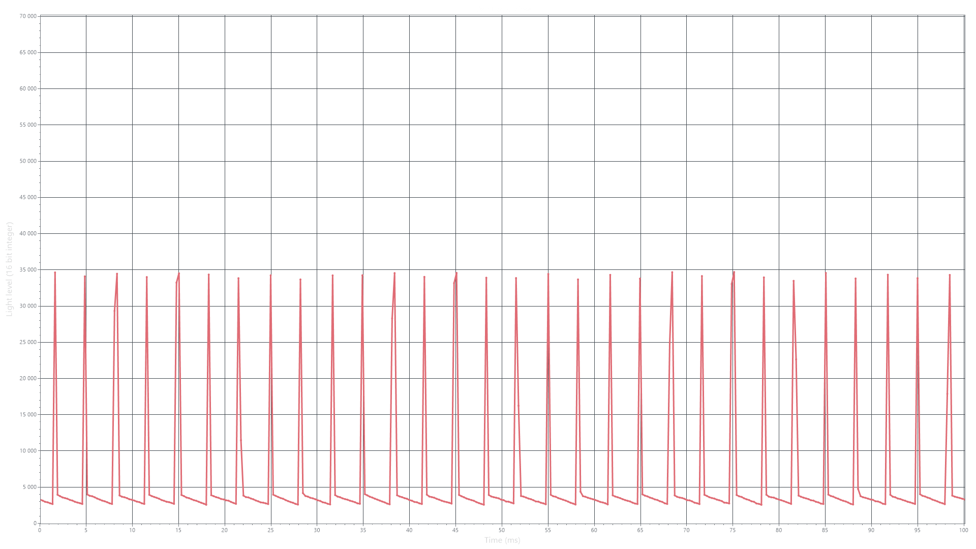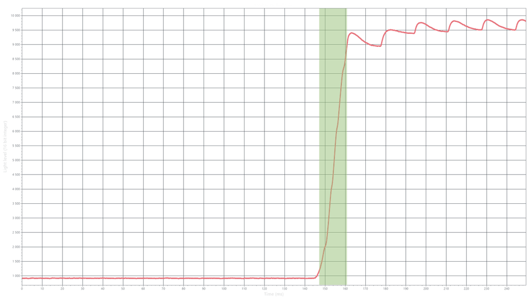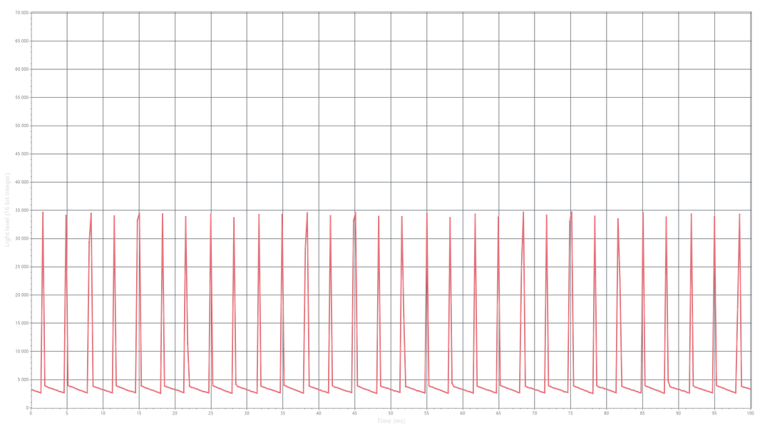 Выше представлены скриншоты результатов измерений белого поля при яркости подсветки в 100%, 50% и 0% соответственно, полученные с помощью прибора OSRTT. Используется частота 300 Гц, что может вызывать дополнительную нагрузку на глаза и даже приводить к ощущению рези в случае продолжительной работы за экраном, но всё же большинство потребителей не обратят на подобное мерцание внимания. Другими словами, всё крайне индивидуально.
