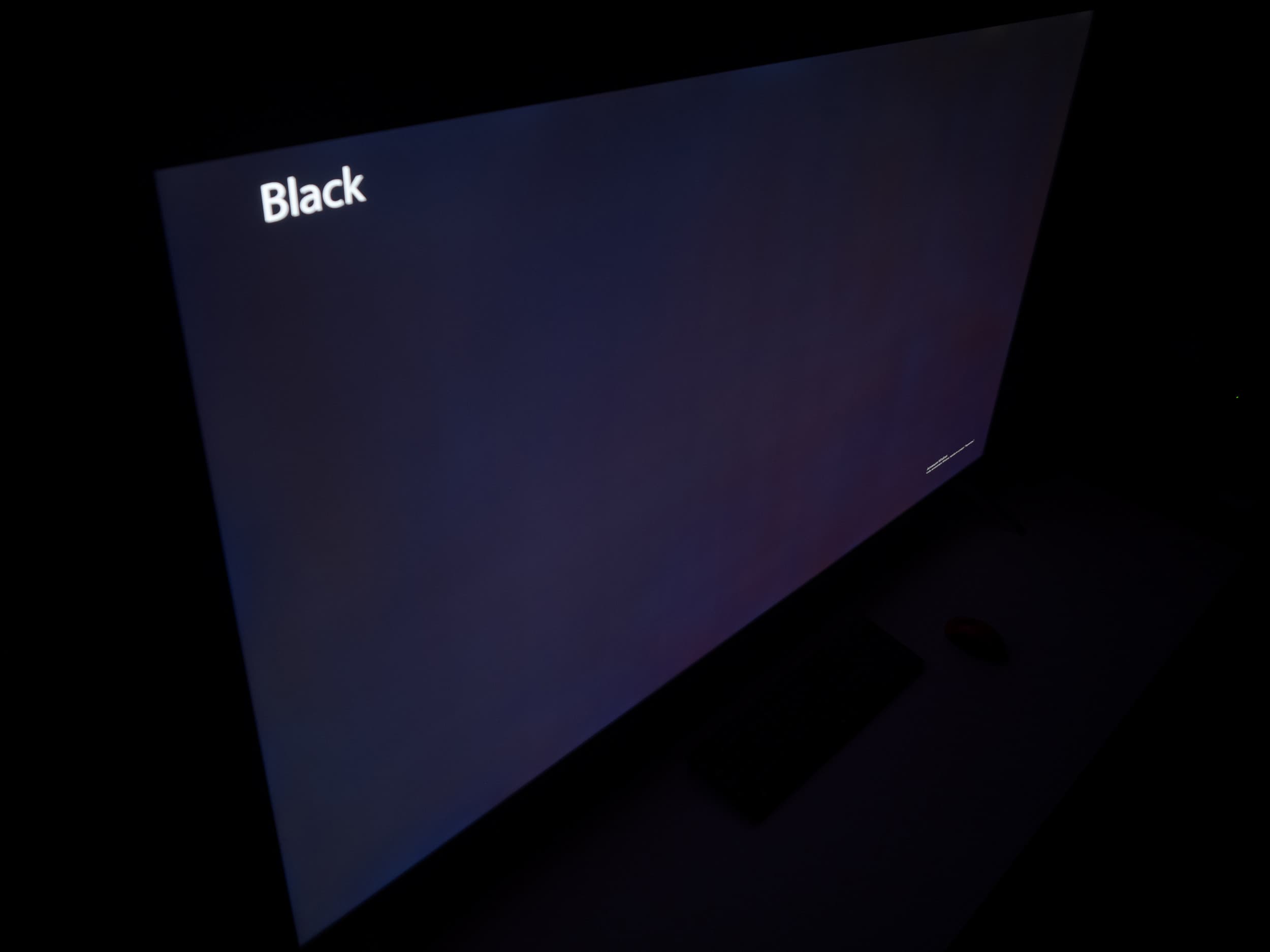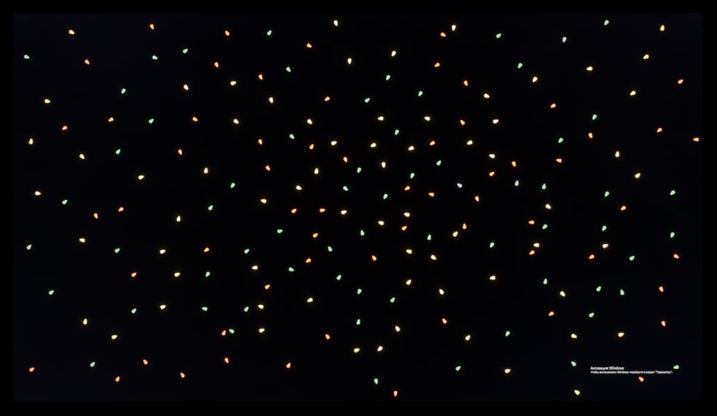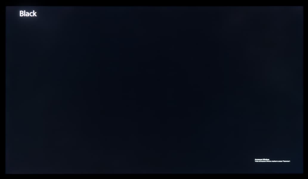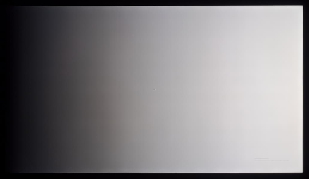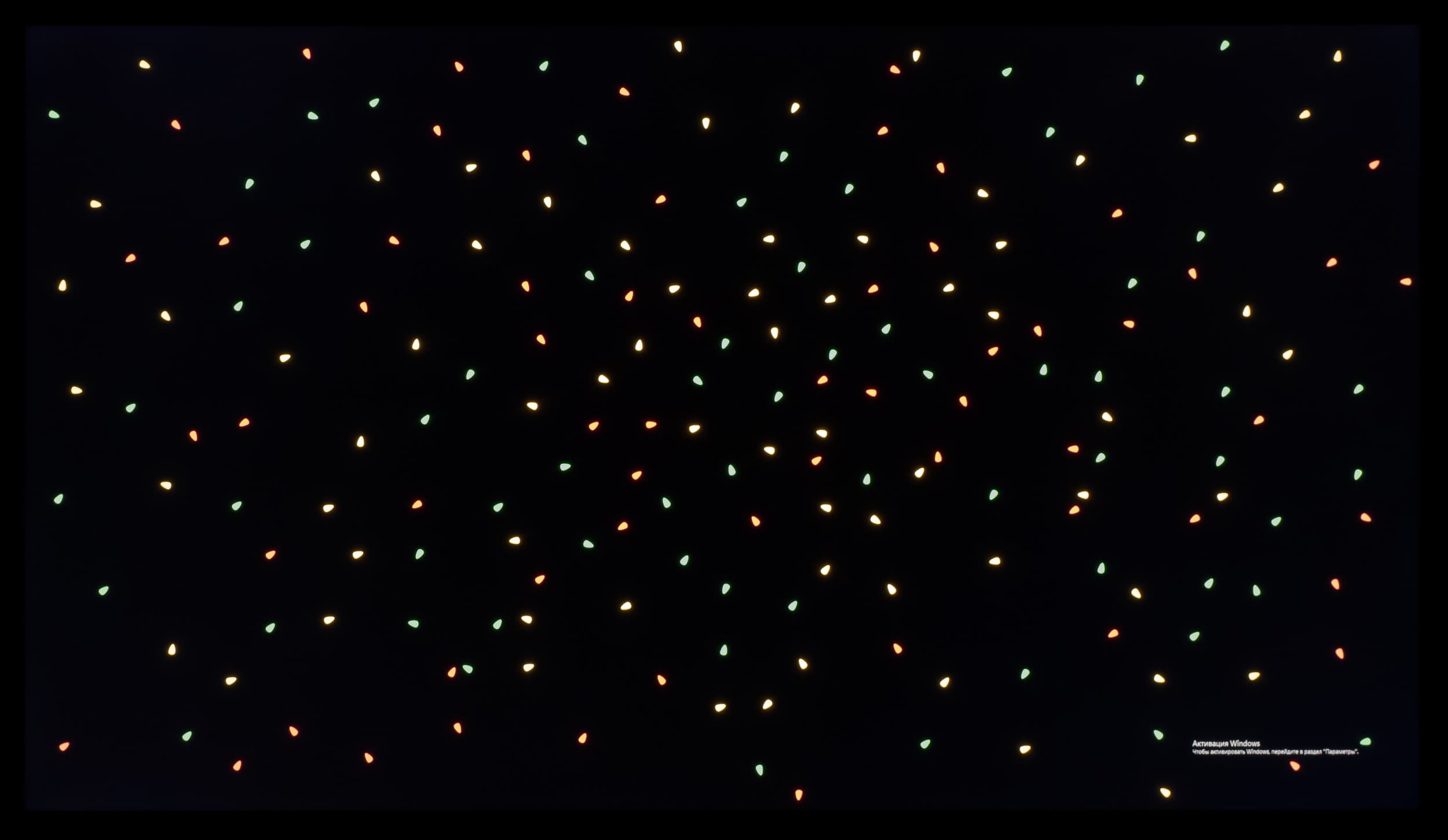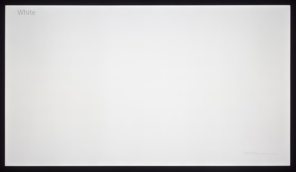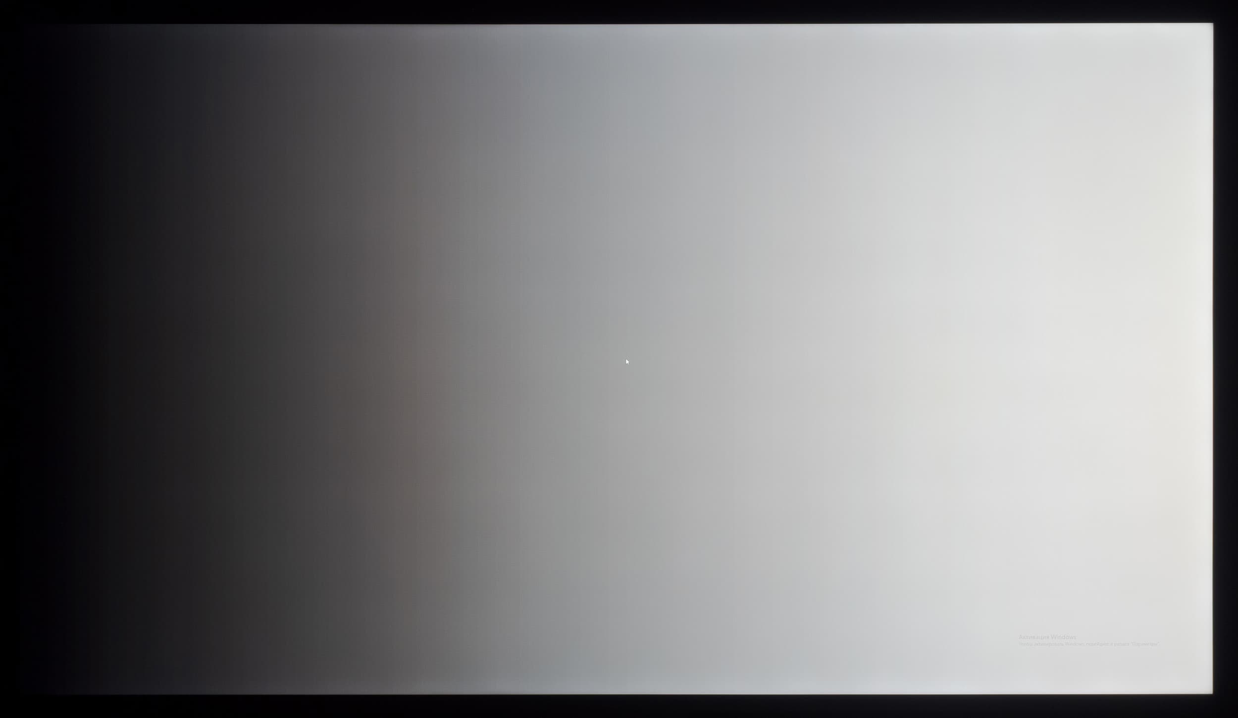 При выводе черного поля равномерность подсветки оказалась очень хорошей, без визуально выраженных дефектов однородности по полю матрицы, что подтверждает вторая фотография, сделанная с расстояния до экрана в 3 метра.