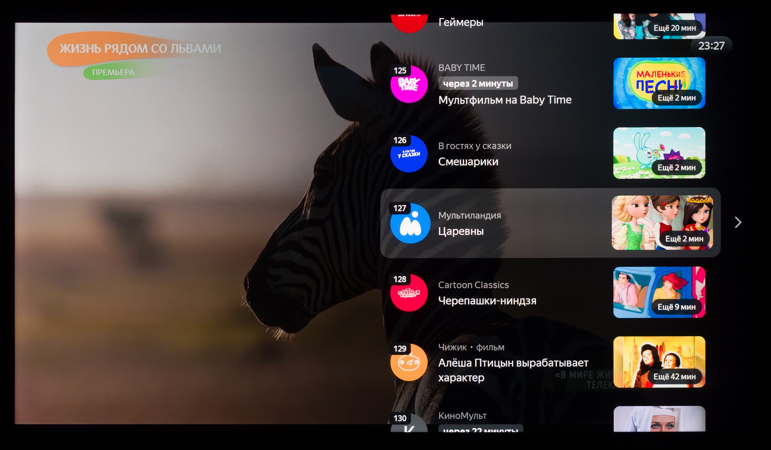 Телевизор вполне корректно (и почти всегда) работает с роликами в форматах HDR10 и HLG, но не способен корректно воспроизвести Dolby Vision, чему мы совсем не удивились — никто его поддержку и не обещал. Впрочем, какая либо дополнительная настройка изображения при работе ТВ с HDR не предусмотрена. Да и о том, что сейчас активен HDR, телевизор «Яндекса» тоже не сообщает — это немного непривычно.
