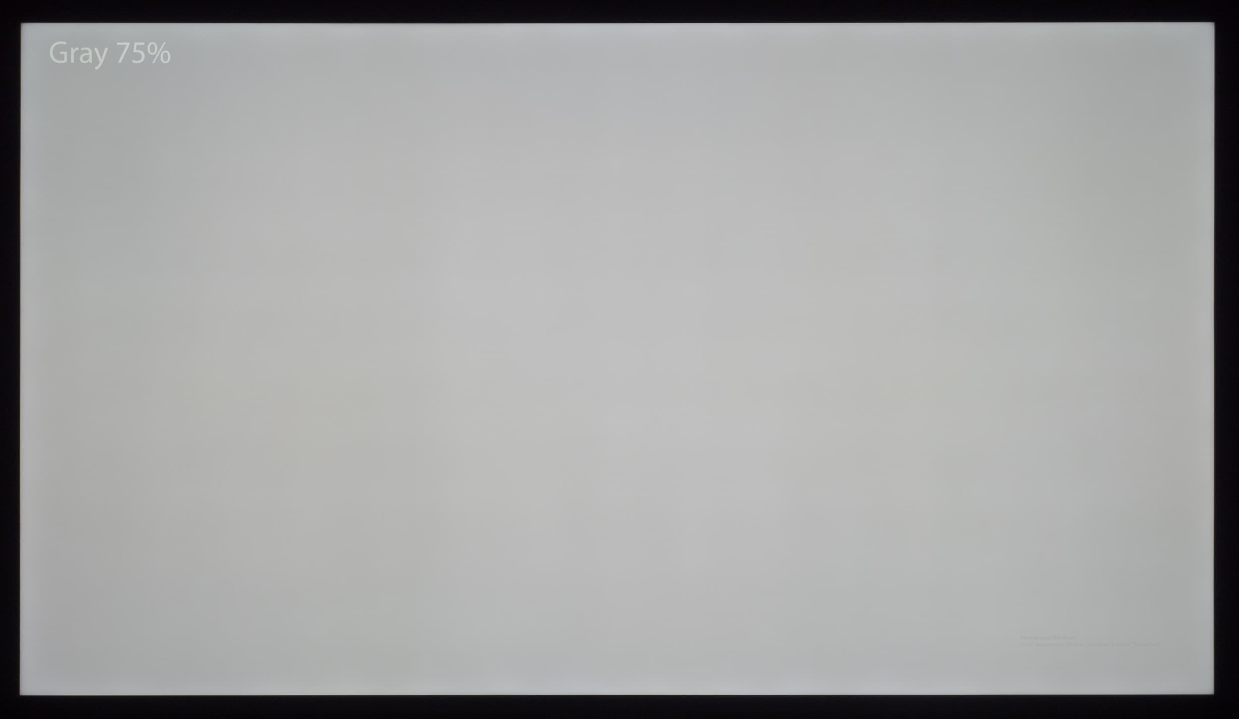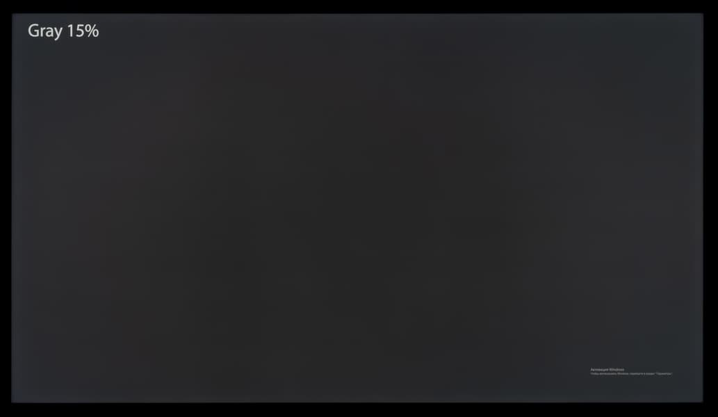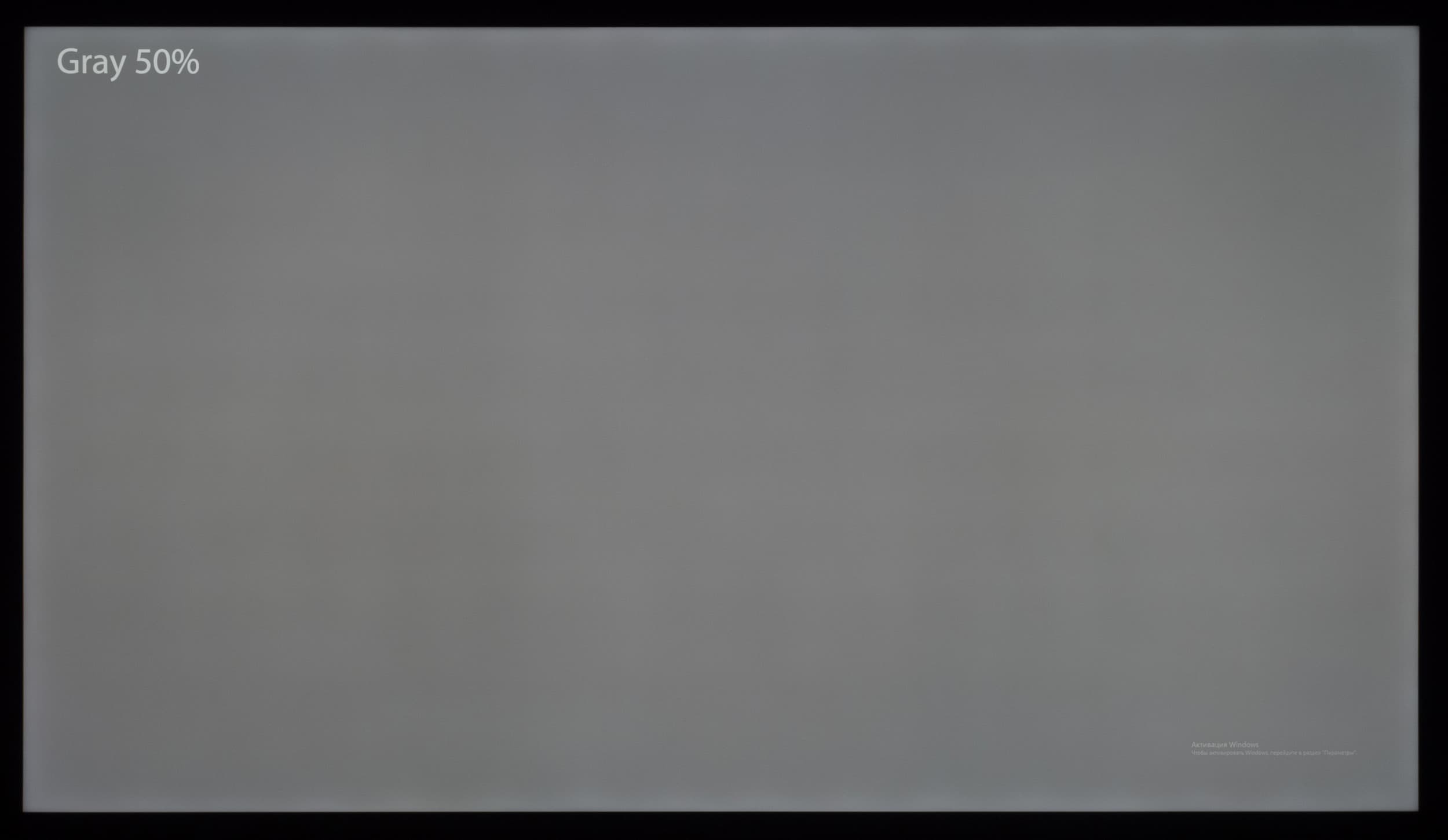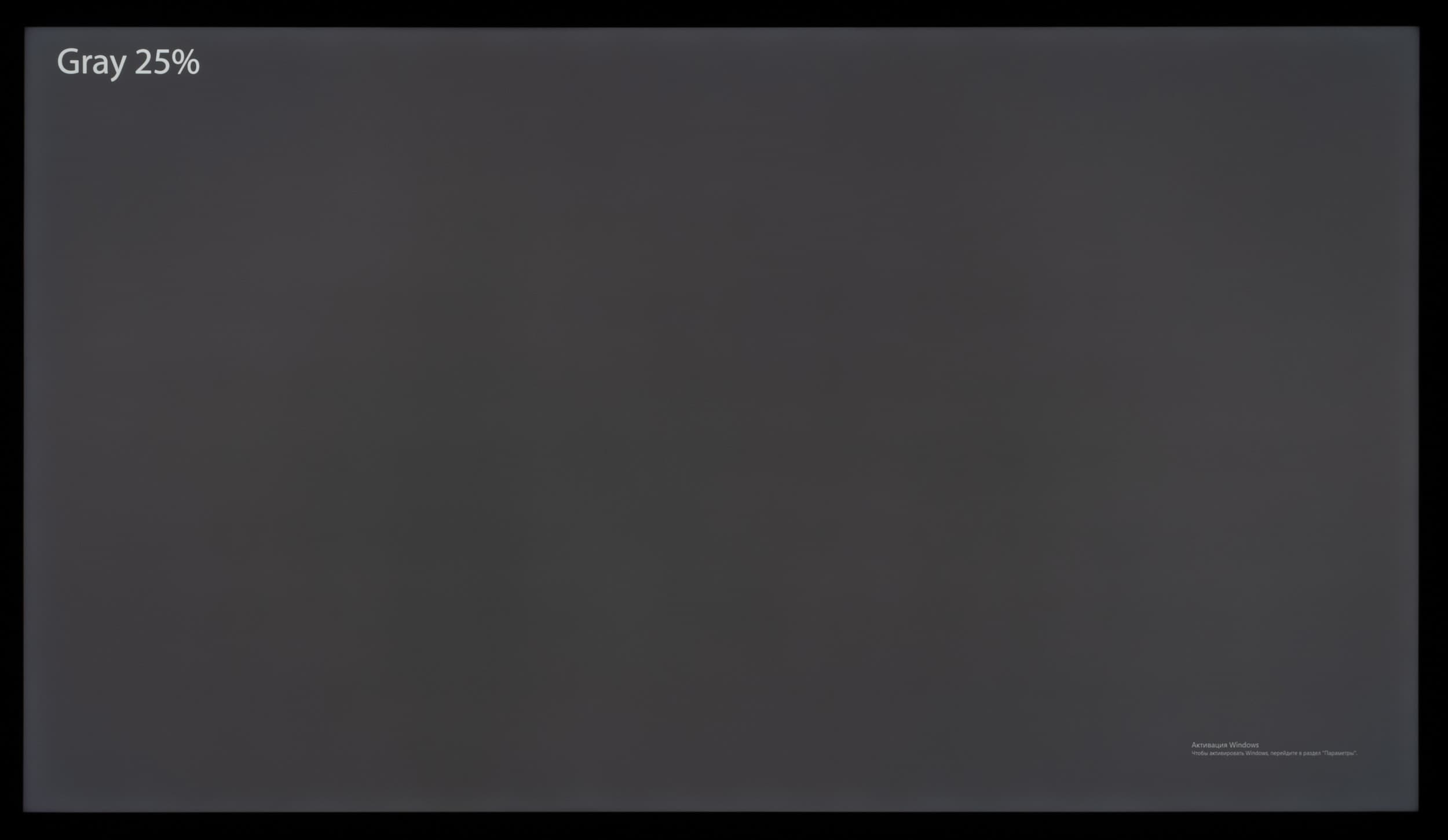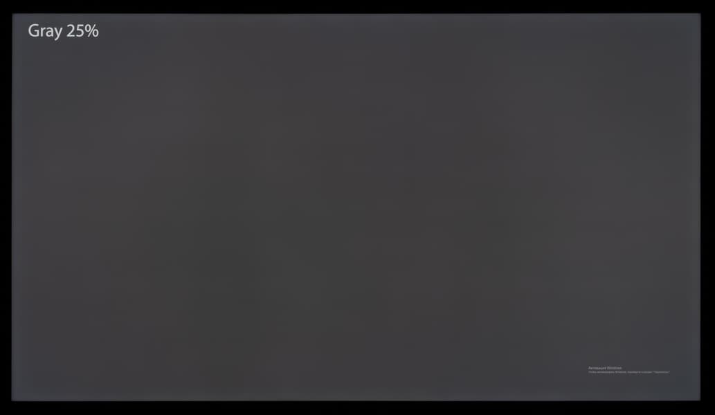 Если посмотреть на неравномерность при переходе к более темным серым оттенкам с их выводом на всю площадь экрана ТВ, то на средних и самых темных из них вдобавок можно заметить выраженные вертикальные полосы (с легким паразитным оттенком), свидетельствующие о расположении лент светодиодной подсветки, ведь у героя обзора она прямая (Direct LED), а поэтому подобная особенность — в порядке нормы.