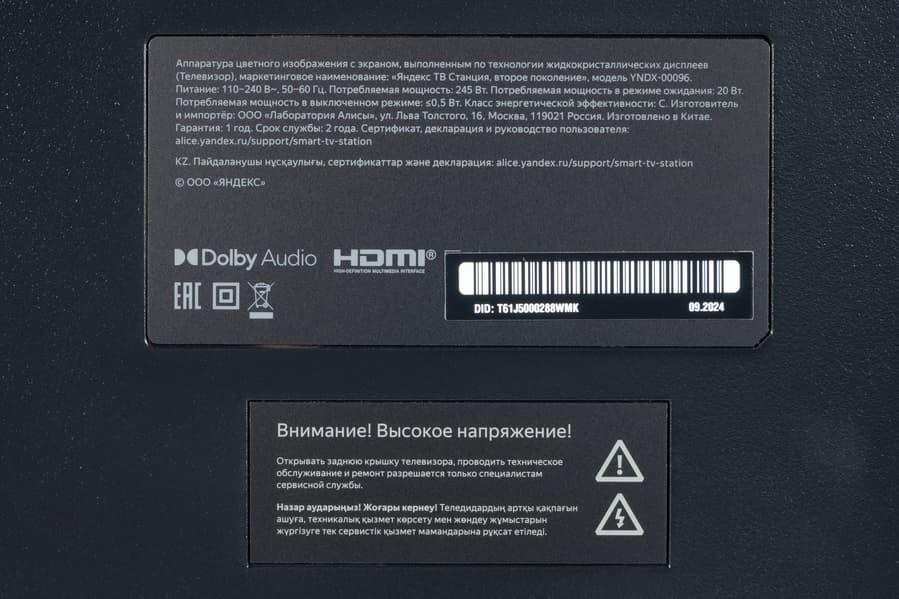 В изучаемой модели отсутствует электронная инструкция — «Яндекс» предлагает пройти на свой сайт по QR-коду или ссылке. В телевизор встроена лишь краткая справка в виде основных голосовых команд для коммуникации с Алисой, а также представлен красочный рекламный ролик о всех особенностях рассматриваемой «ТВ Станции второго поколения».