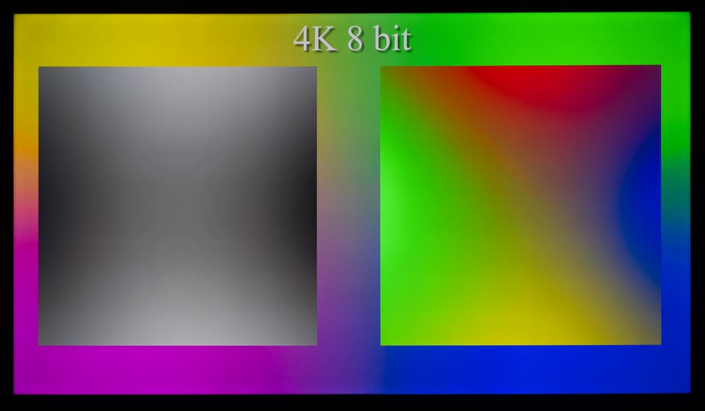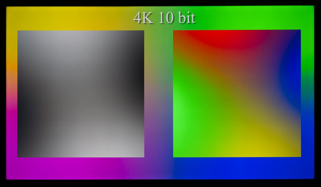 Наглядно видно, что телевизор способен выводить градиенты в 10-битном режиме более качественно, чем в стандартном 8-битном. Но в большей степени это будет актуально при выводе HDR-контента с соответствующими требованиями к ТВ.