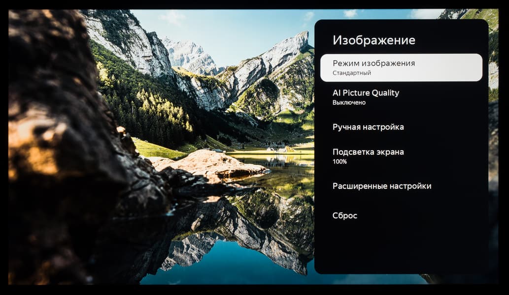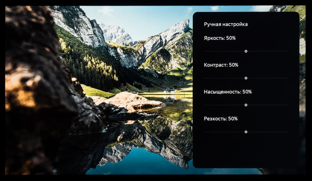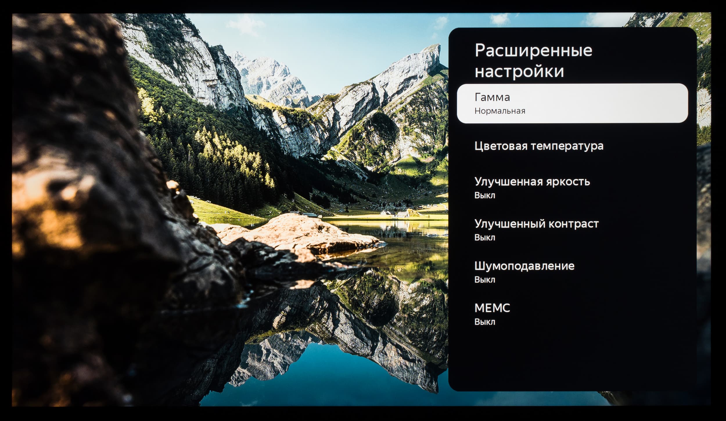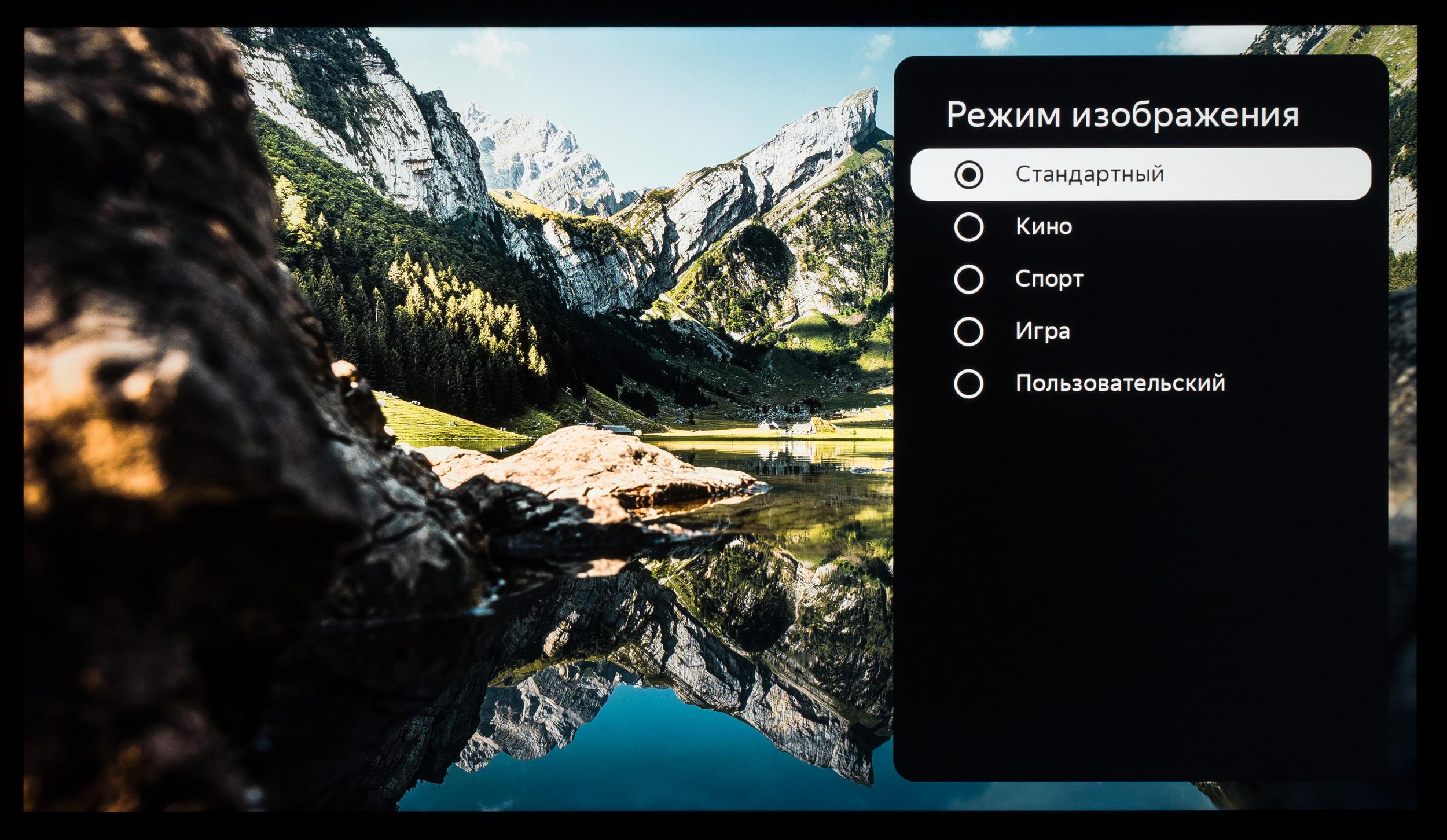 В телевизоре «Яндекс ТВ Станция» нам понравился полноценный и качественный перевод на русский язык. Среди настроек изображения производитель убрал большое количество ненужных функций и параметров, оставил только самые важные из них.