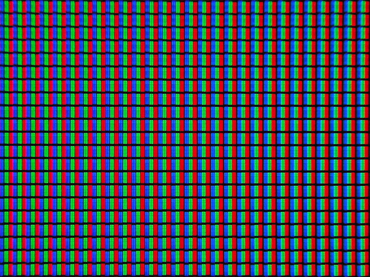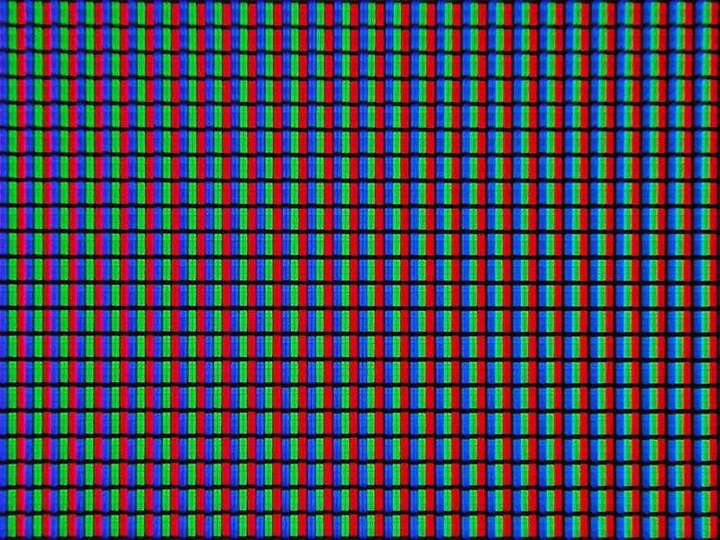 По микрофотографиям матрицы видна характерная для некоторых подтипов VA-матрицы структура субпикселей.