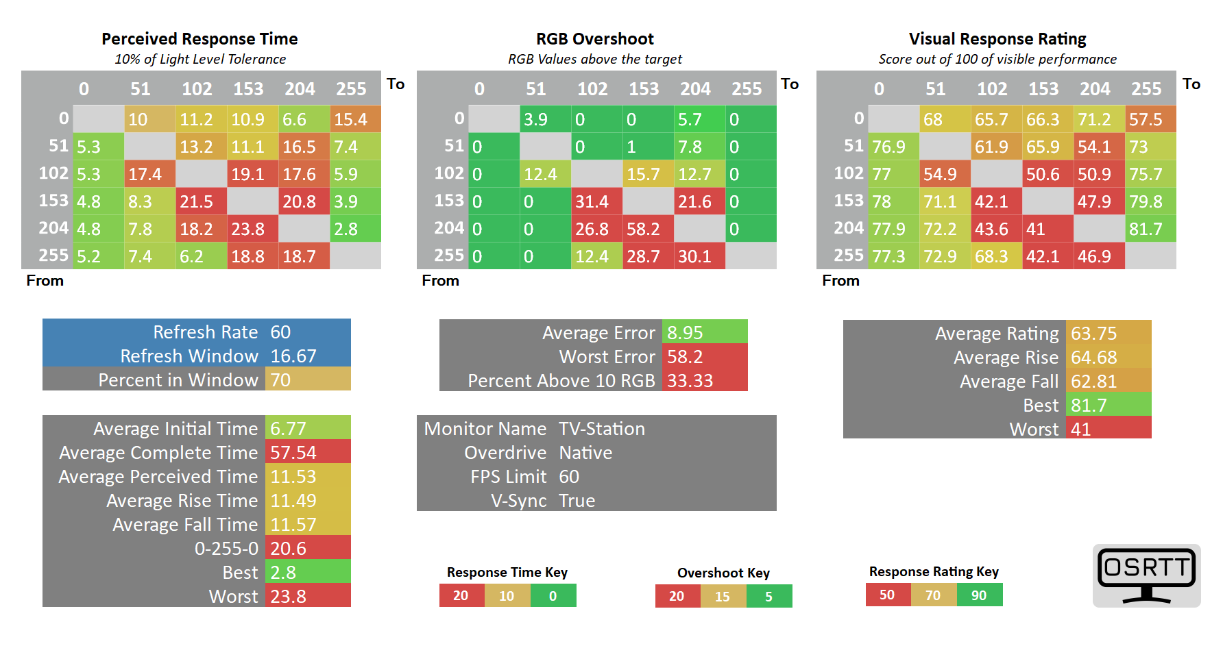 По факту создатели телевизора использовали VA-панель из доступного сегмента с частотой обновления 60 Гц и достаточно низкой скоростью отклика. Такой вывод основан на полученных результатах и непосредственно визуальной оценке.