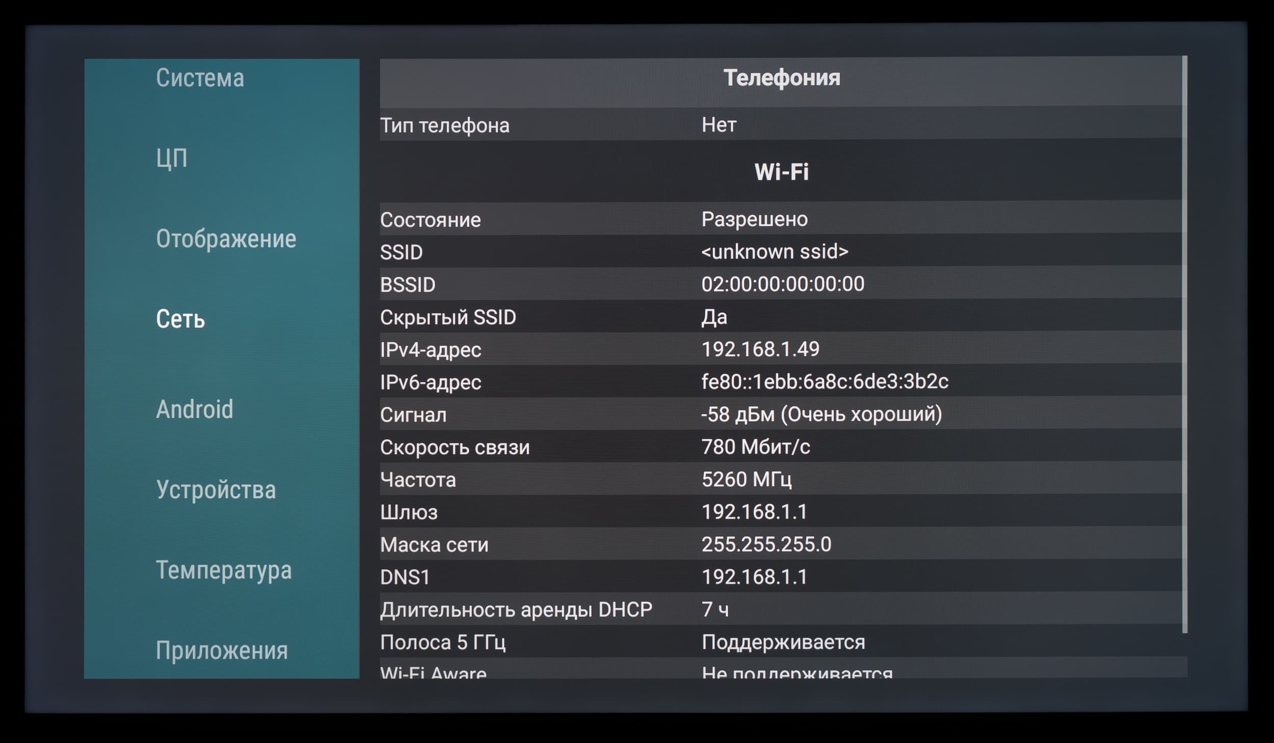 В развернутой сети 5 ГГц на базе роутера Keenetic Hopper (KN-3810), при нахождении телевизора в 5 метрах по прямой от него с преградой в виде монолитной стены, телевизор «Яндекса» продемонстрировал стабильную скорость подключения 700-780 Мбит/c (тип подключения — 11ac/k/r/v, 2×2 80 МГц). Это очень высокий результат.
