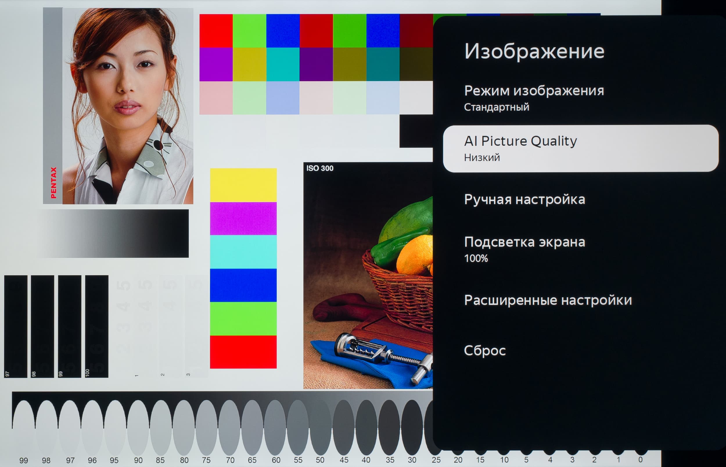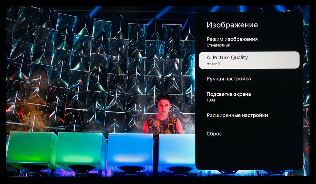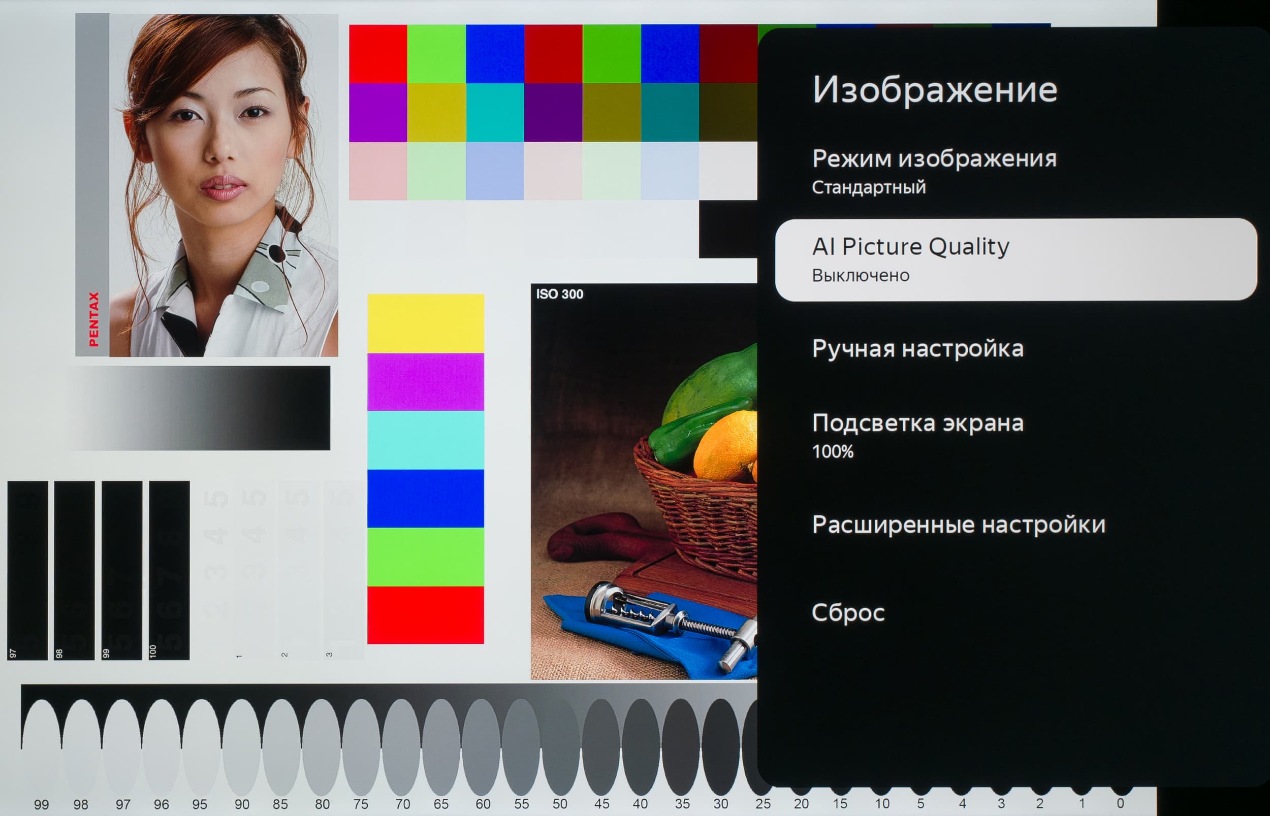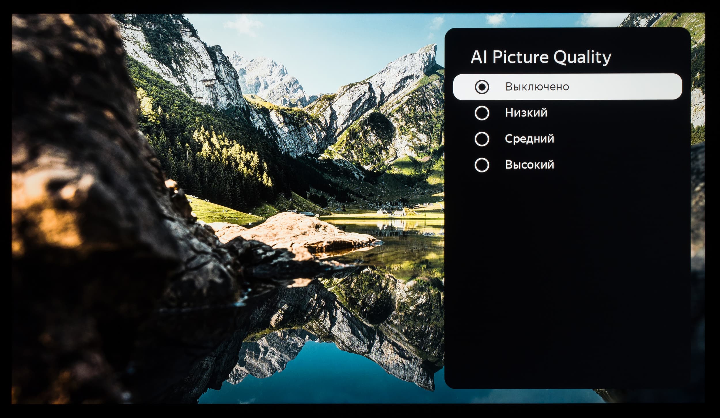 Что же касается заявленной производителем «умной системы улучшения качества картинки — Yandex PQ» (она же — AI Picture Quality), то никакой магии она нам продемонстрировать не смогла.